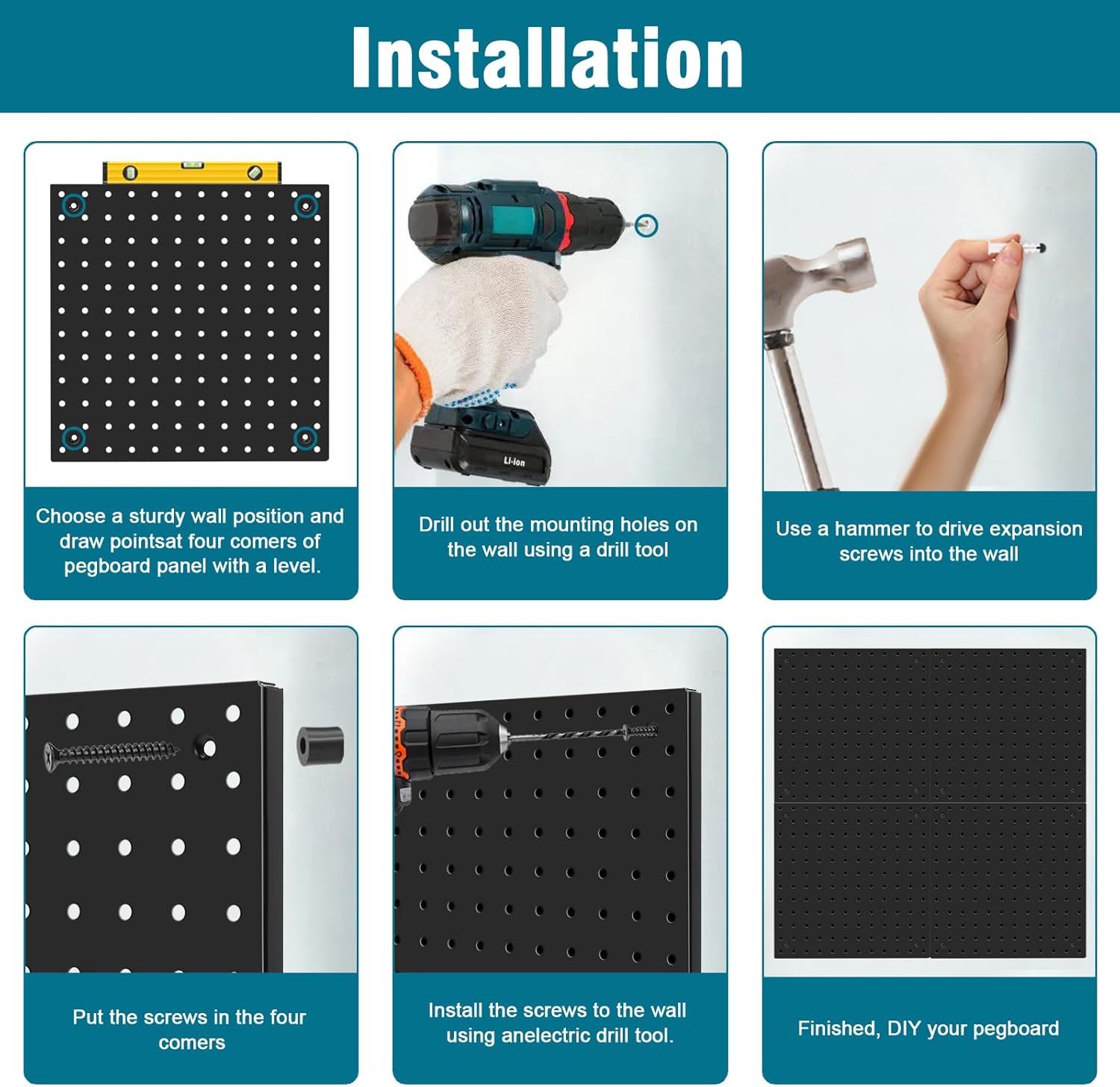 - 2.[Package Content] The product comes as a 4-pack 12“X12" pegboard and includes all the essential accessories for installation