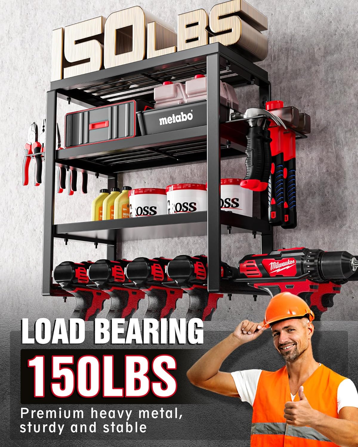 - LOAD BEARING 150 LBS: Our tool organizer is made of premium heavy metal, featuring durability, pressure resistance. It comes with 8 wall anchors to make the rack more sturdy and stable. After extensive load testing, each layer can support up to 37 LBS