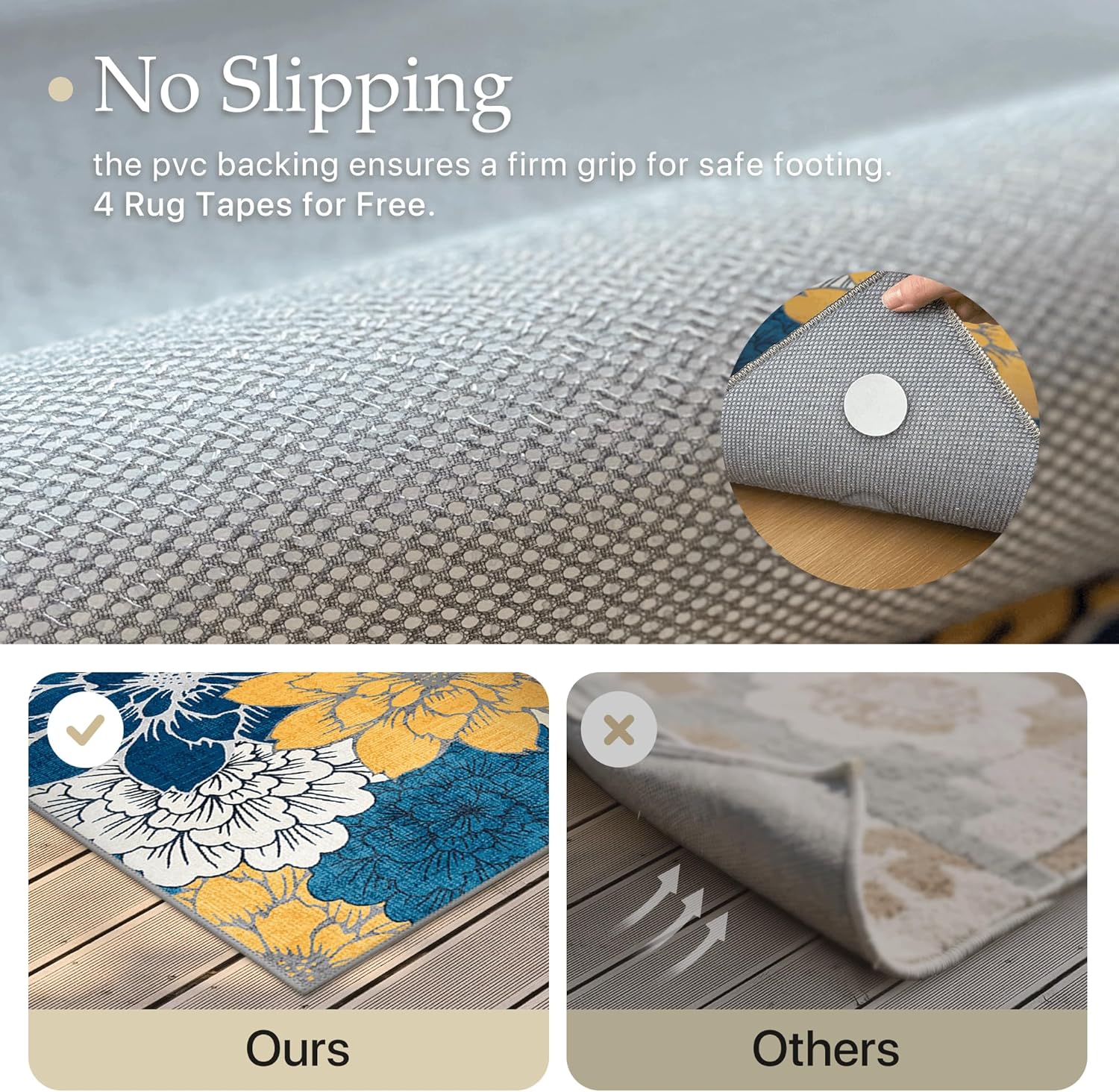 GENIMO Indoor Outdoor Area Rug 5' X 7' Waterproof, Washable Patio Rug Non Shedding, Easy Cleaning Floral Outdoor Carpet for Living Room, Bedroom, Dining Room, Balcony, Backyard, Deck, RV, Blue