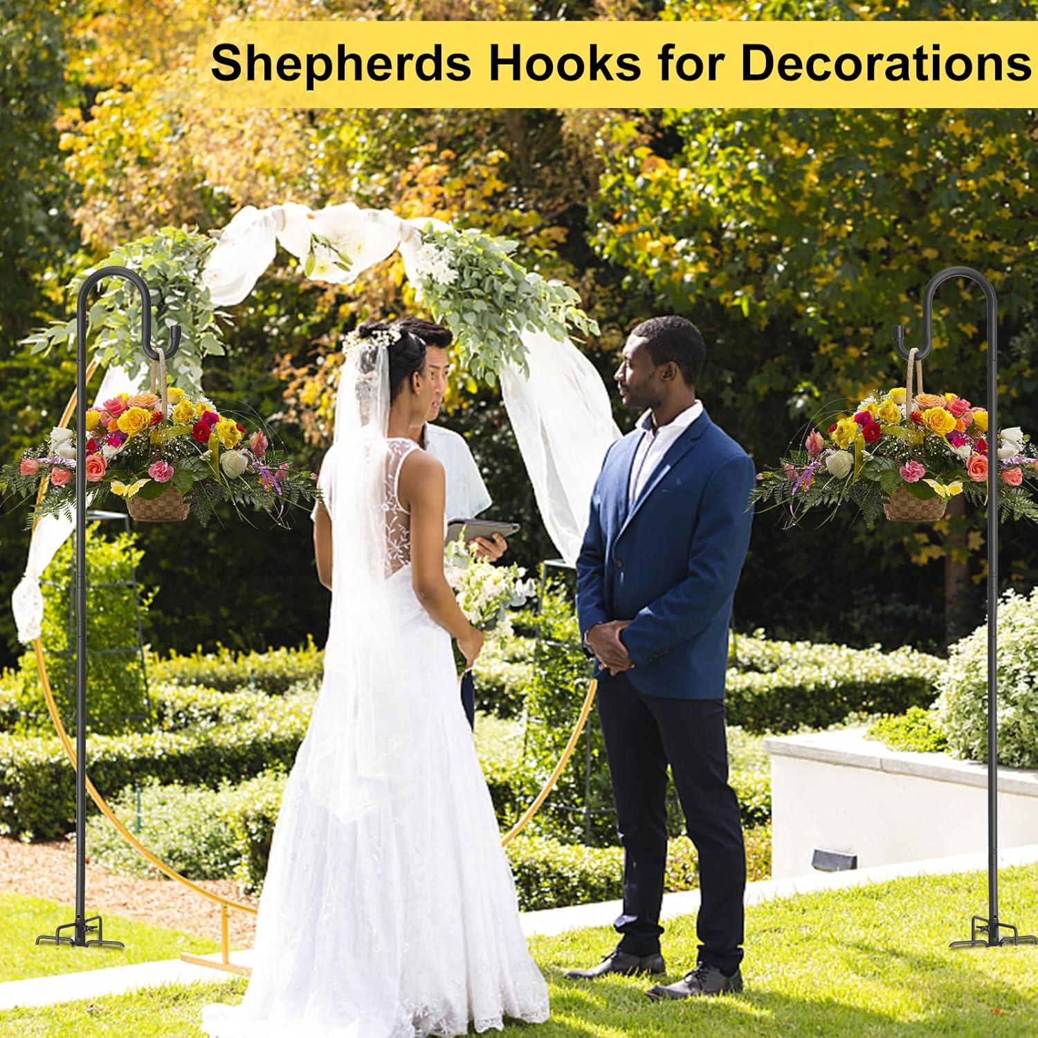 78 Inch Extra Tall Shepherd Hooks for Outdoors, Heavy Duty Metal Garden Hooks for Hanging Plants, Bird Feeders, Lanterns – Rust-Proof Steel with 5 Fork Base, Black