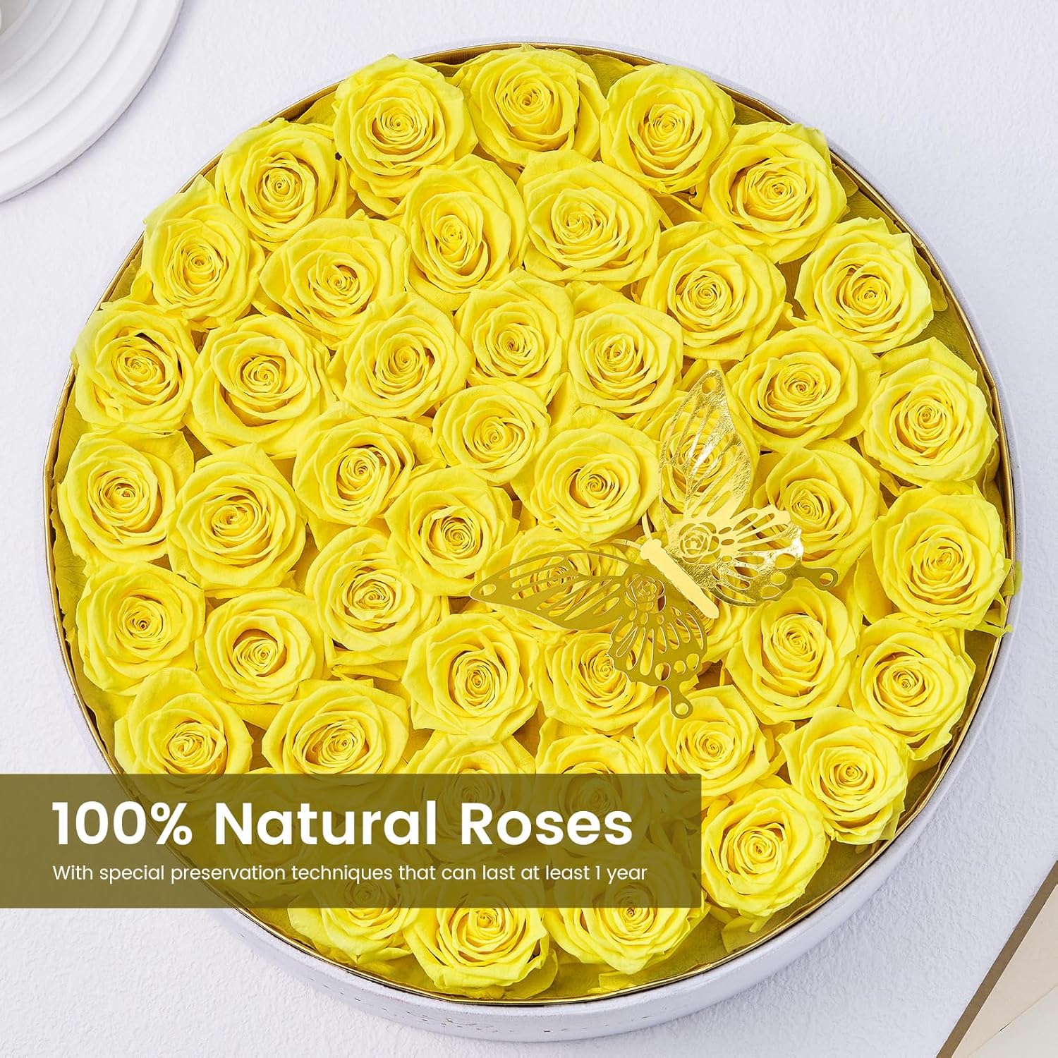 Preserved Roses Forever Flowers Real Roses in a Box Mother's Day Birthday Flowers for Her Mom Women Wife Valentine's Day, Yellow, 47 Piece