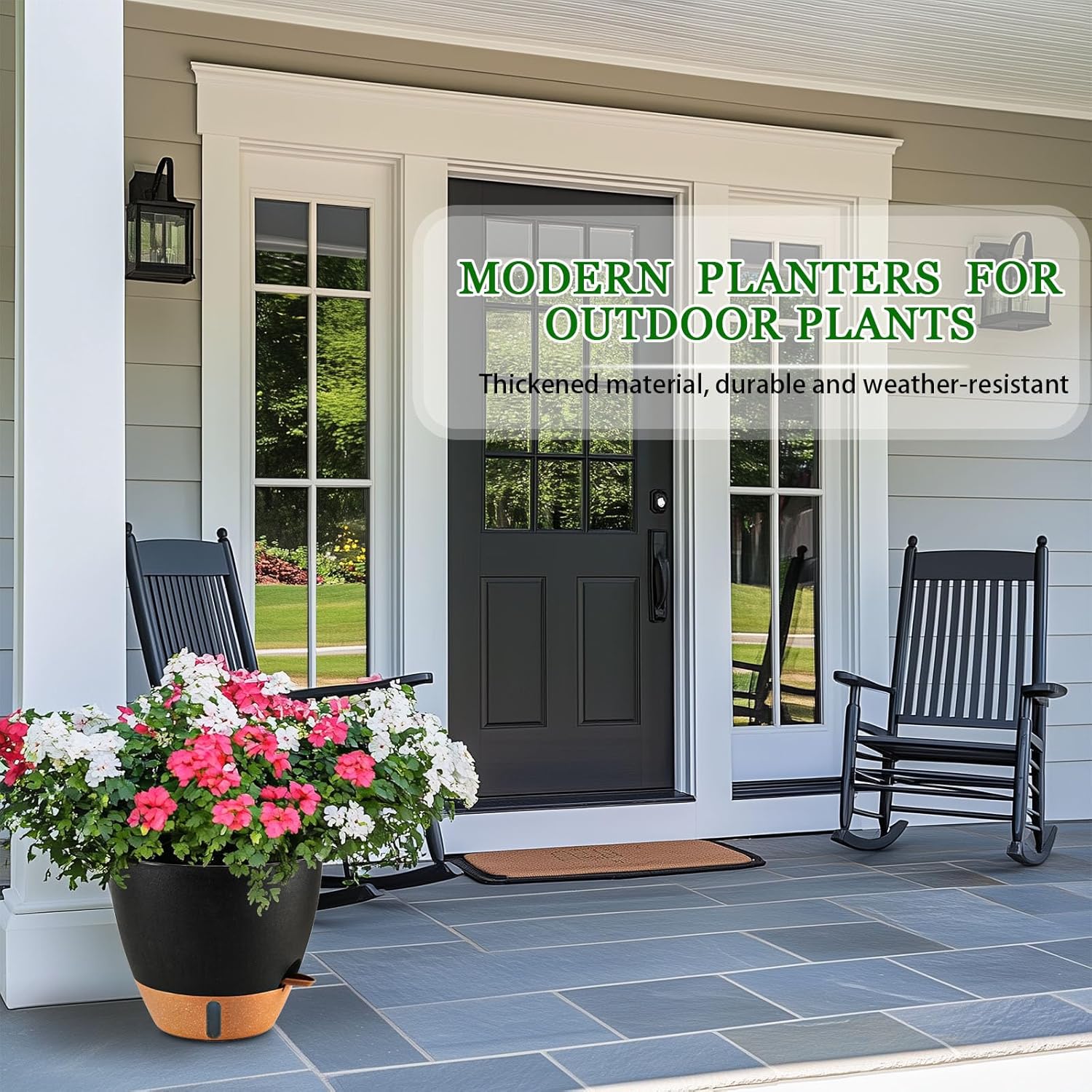 - 🛡【Durable Plastic Construction】Crafted from premium HIGH-TEMPERATURE-RESISTANT PLASTIC, these lightweight yet sturdy self-watering flower pots with stand harsh sunlight, rain, and indoor humidity without cracking or fading. Use them safely in gardens, balconies, or living rooms—their sleek design blends seamlessly into modern decor while lasting seasons.