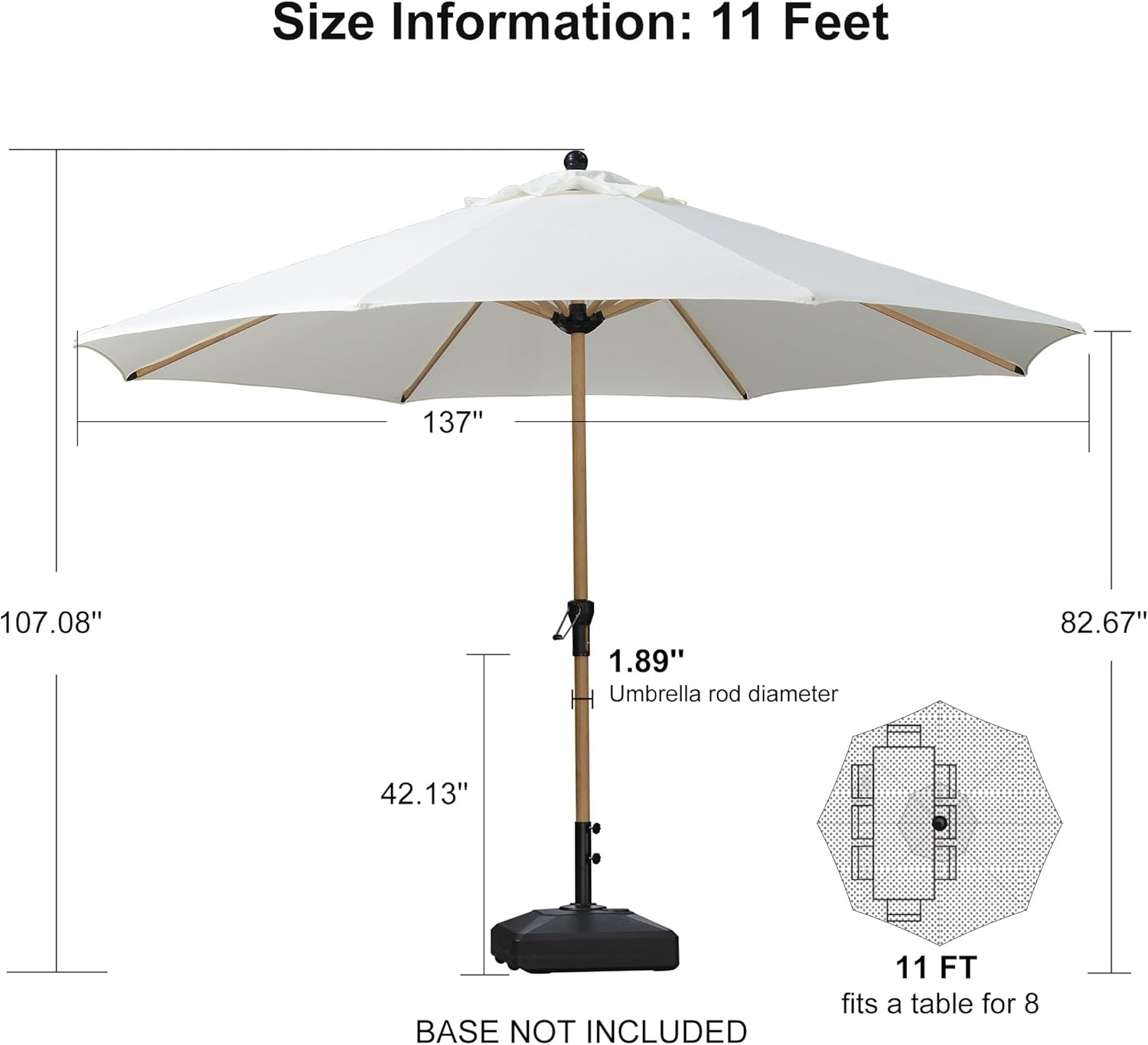 PURPLE LEAF 11 Feet Patio Umbrella Outdoor Table Umbrella Round Aluminum Market Umbrella with 8 Sturdy Ribs & Crank Commercial Outdoor Umbrellas for Garden Deck Patio, Cream