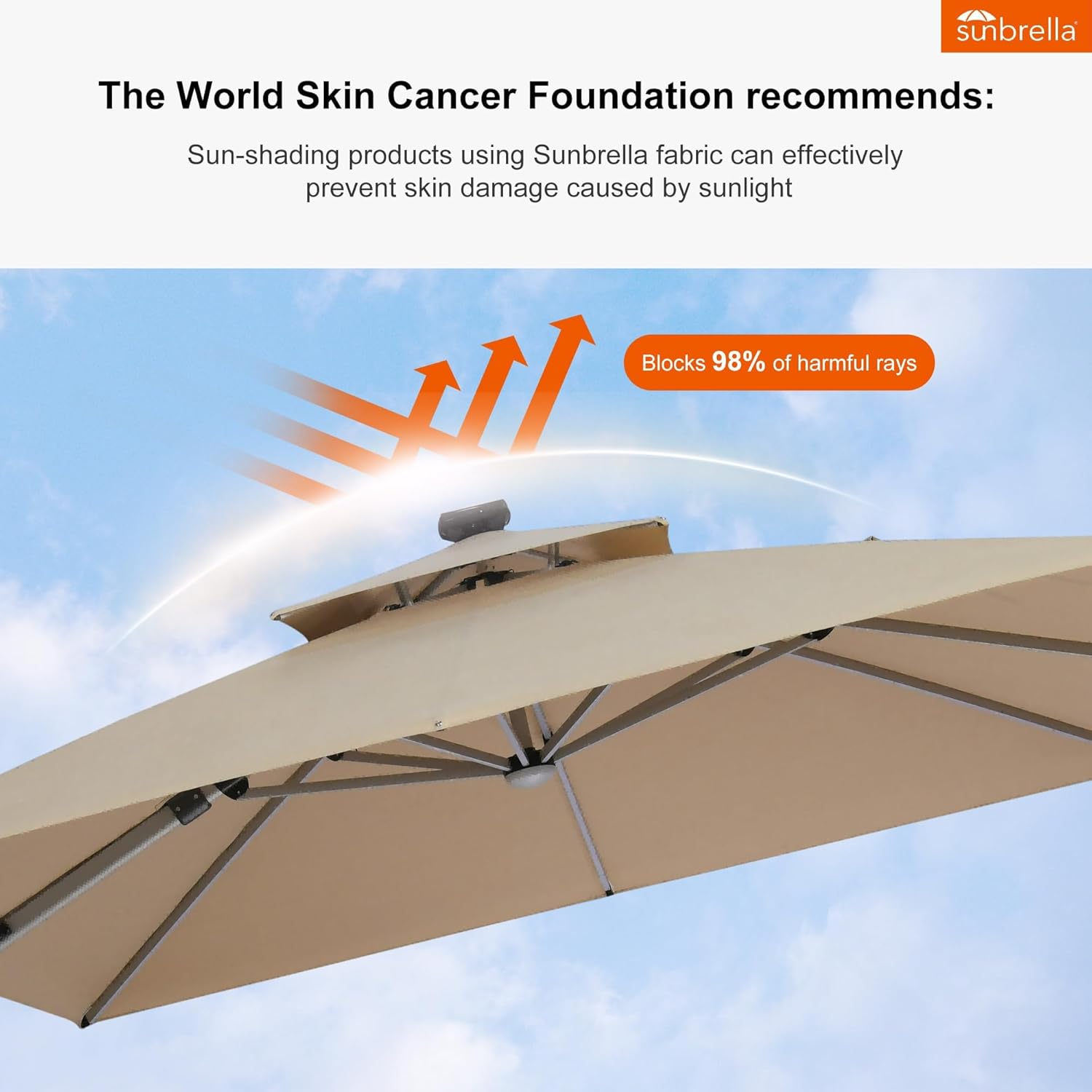 - This cantilever umbrella has unique handle design and crank system, 6 height and angle to choose, 360-degree rotation for easier shading area control