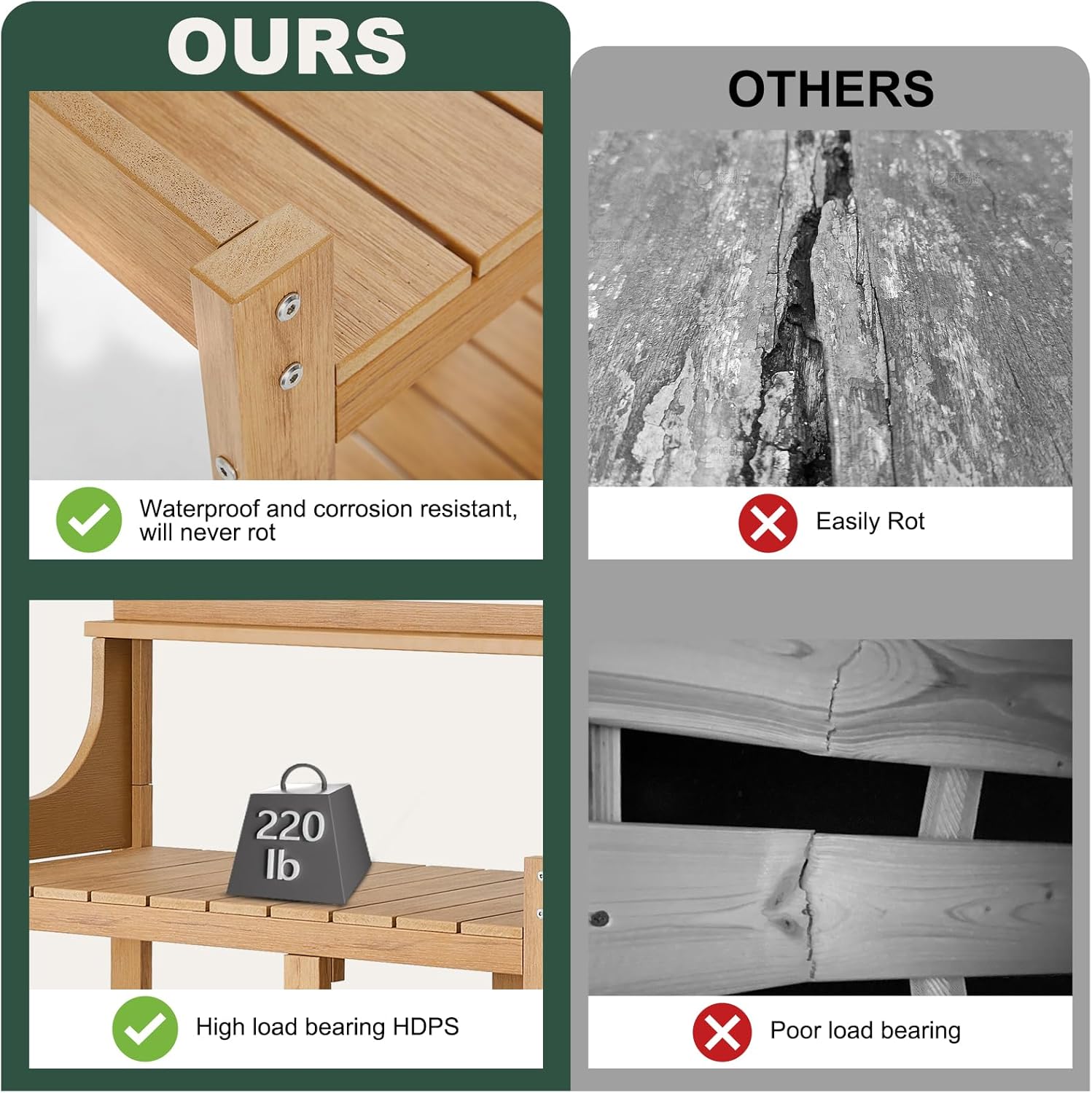 LMP Potting Bench, HDPS Potting Bench Table, 50’’x17.5x37.5' (LxWxH) All Weather Potting Table Work Station for Outside Gardening, Like Teak Wood