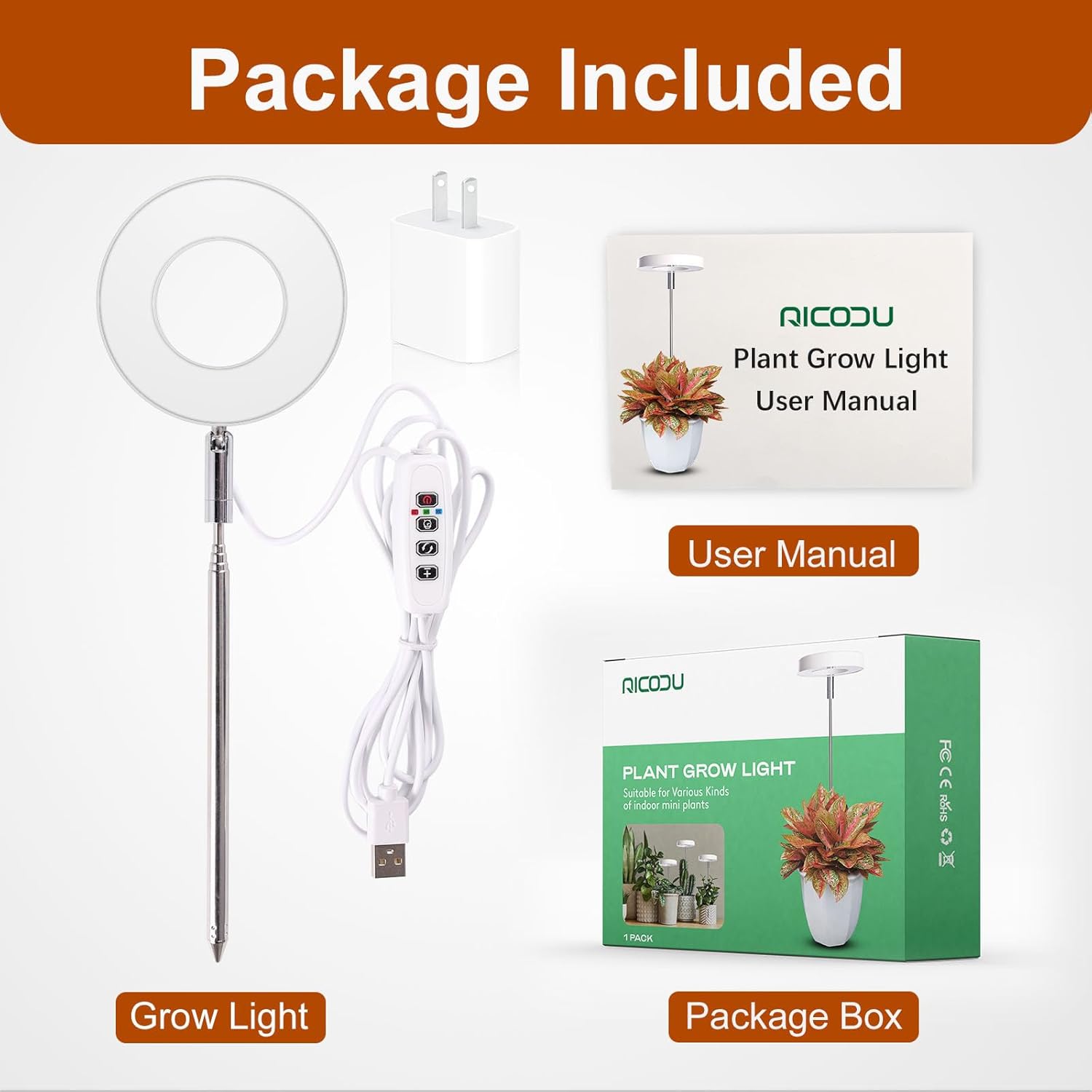 Grow Lights for Indoor Plants Small Potted - Full Spectrum, Auto 3/9/12H Timer, 10-Level Dimming & Adjustable Height - Compact Grow Light for Succulents, Herbs, Foliage in Home/Office (White,1PACK)