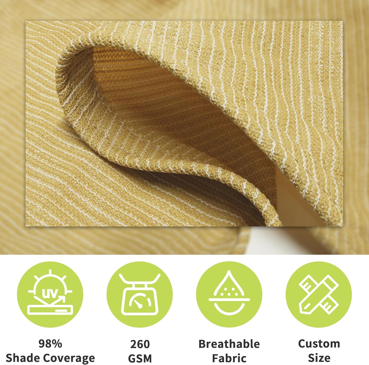 - 98% UV Blockage & Breathable Woven Fabric: Blocks 98% of harmful UV rays, significantly reducing temperature and UV exposure in shaded areas during summer. Ideal for patios, swimming pools, balconies, carports, etc. The breathable fabric allows water and air to pass through freely, preventing water pooling on rainy days. Resistant to both UV and water, no maintenance is required