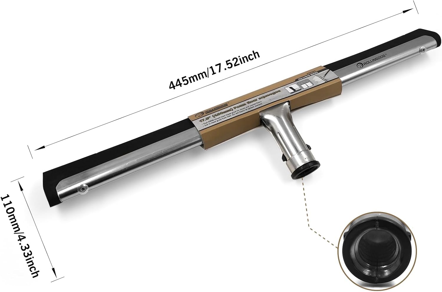 ROLLINGDOG 17.5" Foam Floor Squeegee with Dual EDPM Blades Attachable Extension Pole for Window,Floors and Tile Cleaning