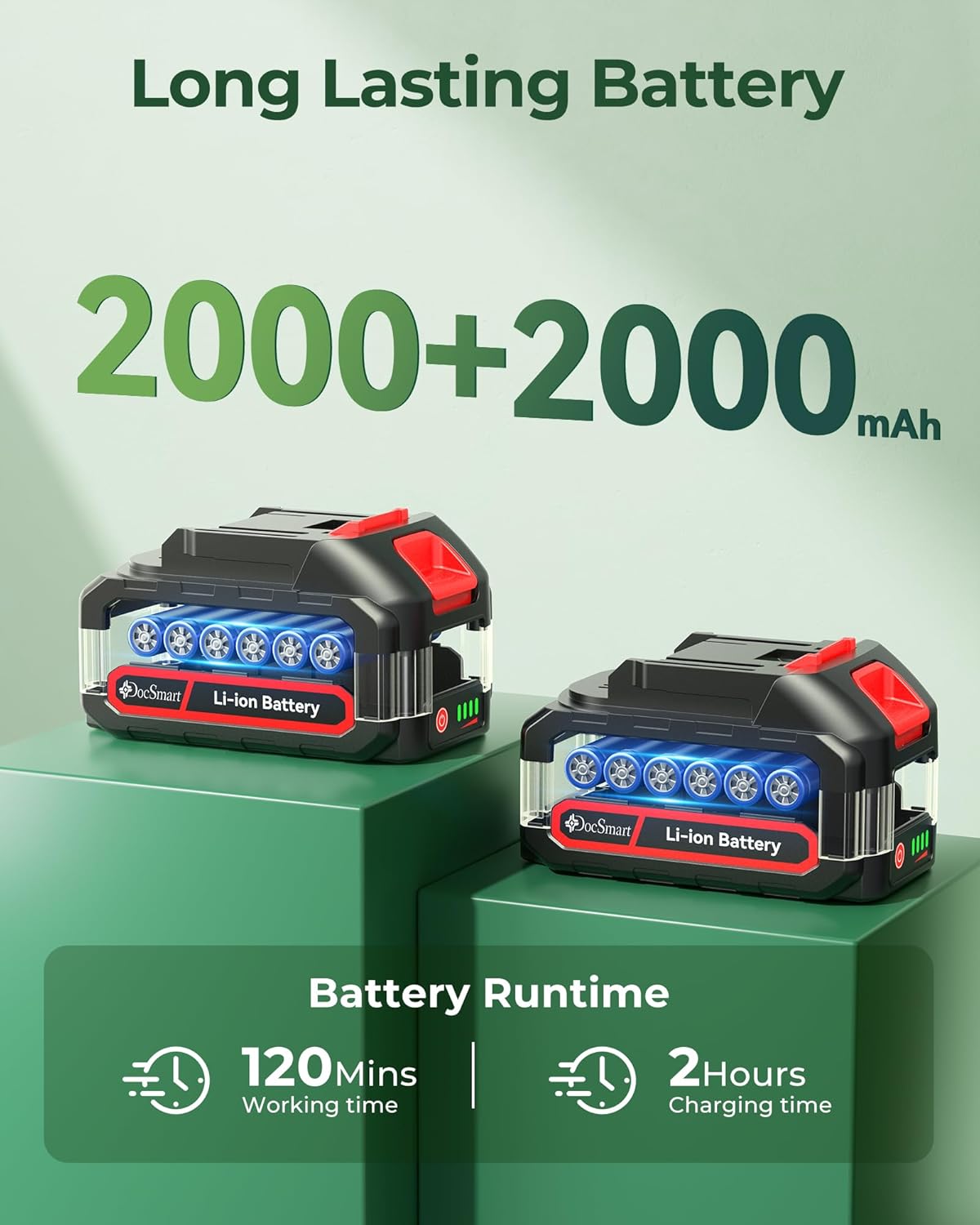 - High-Performance Motor: A 1000W pure copper motor drives the shrub trimmer working at the speed of up to 3000RPM and delivers faster and more efficient cuts. Cordless gardening tools feature 180° adjustable head for shaping hedges in tight areas. Thanks to the deep quenching process, it ensures smooth cutting. Suitable for elderly people and gardening beginner