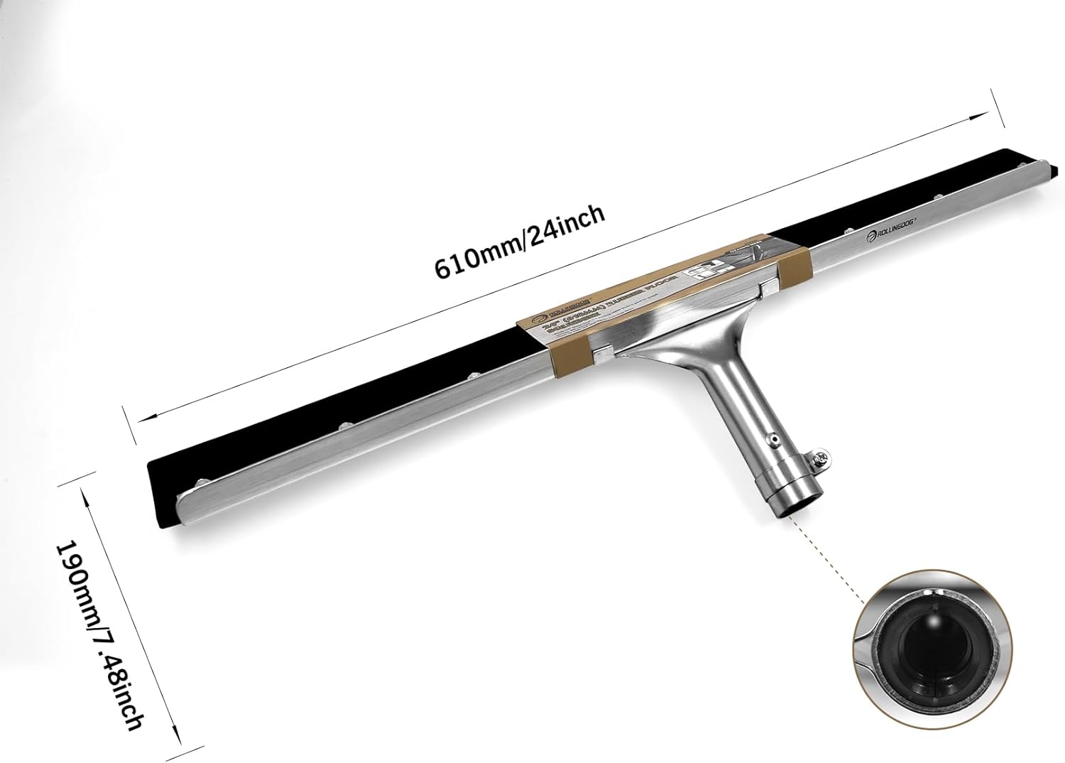 ROLLINGDOG 24" Rubber Floor Squeegee Attachable Extension Pole with 1/4" Non-Marking Blade for Concrete and Large Floor,Garage,Warehouse Cleaning