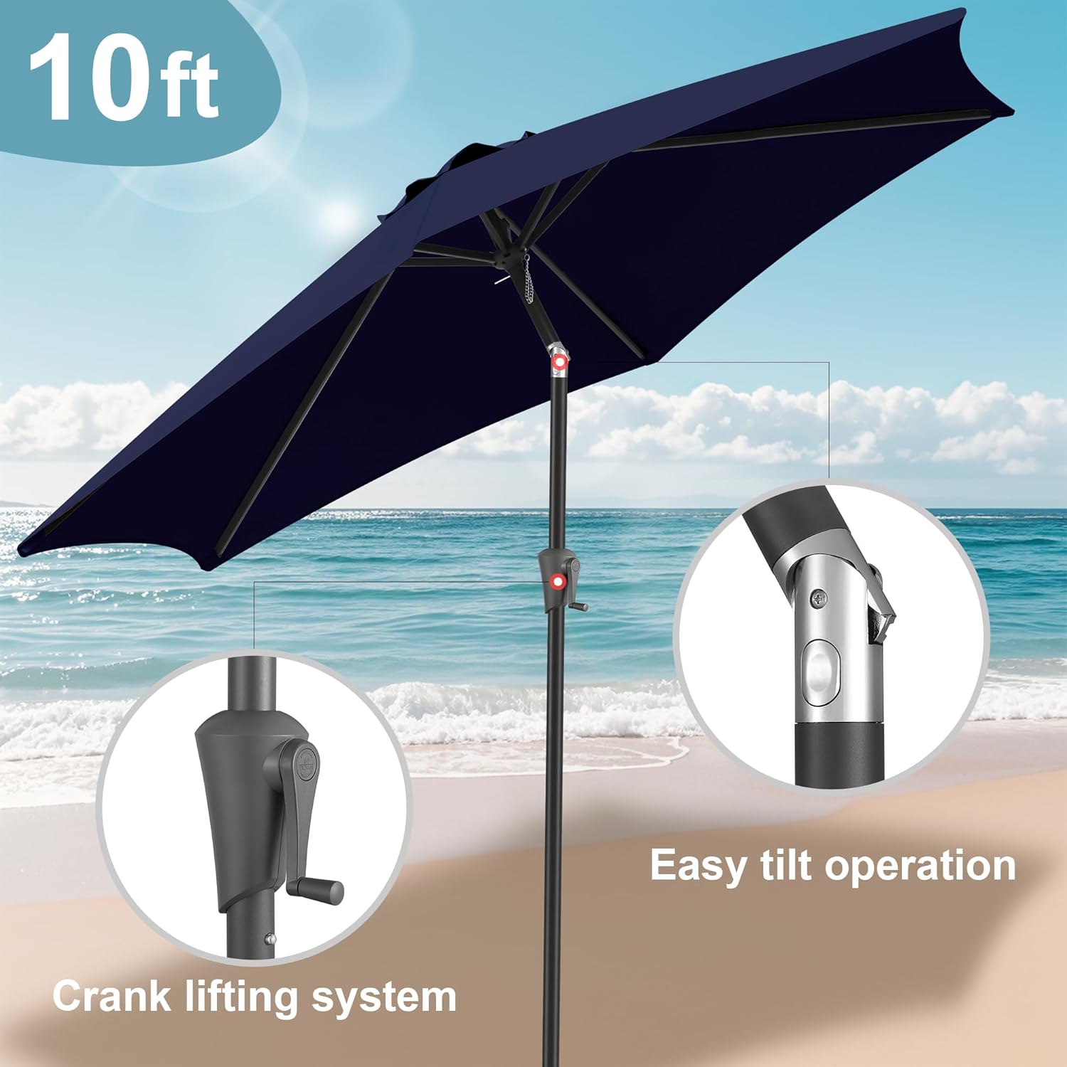 - Effortless use: smooth crank wind for easy operation and good height table clearance. Please search B0CKSFVQJV or B07CL5MFNG for matching umbrella base stand
