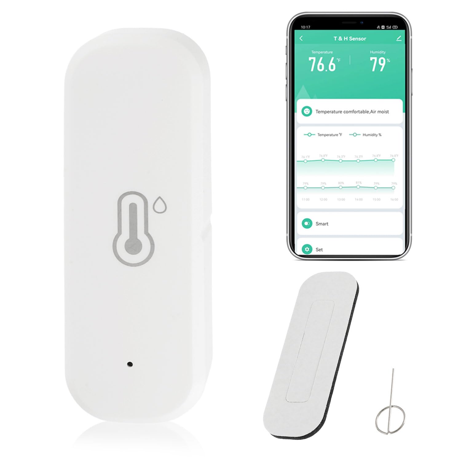 - Easy to use: No need to worry about complicated operations, in 2 minutes or less you can start experiencing the intelligent life! The intelligent temperature humidity sensor supports remote monitoring, free app alerts, ยฐF/ยฐC readings, display history, and temperature and humidity graph functions. Ideal for use with your humidifier/dehumidifier/air conditioner