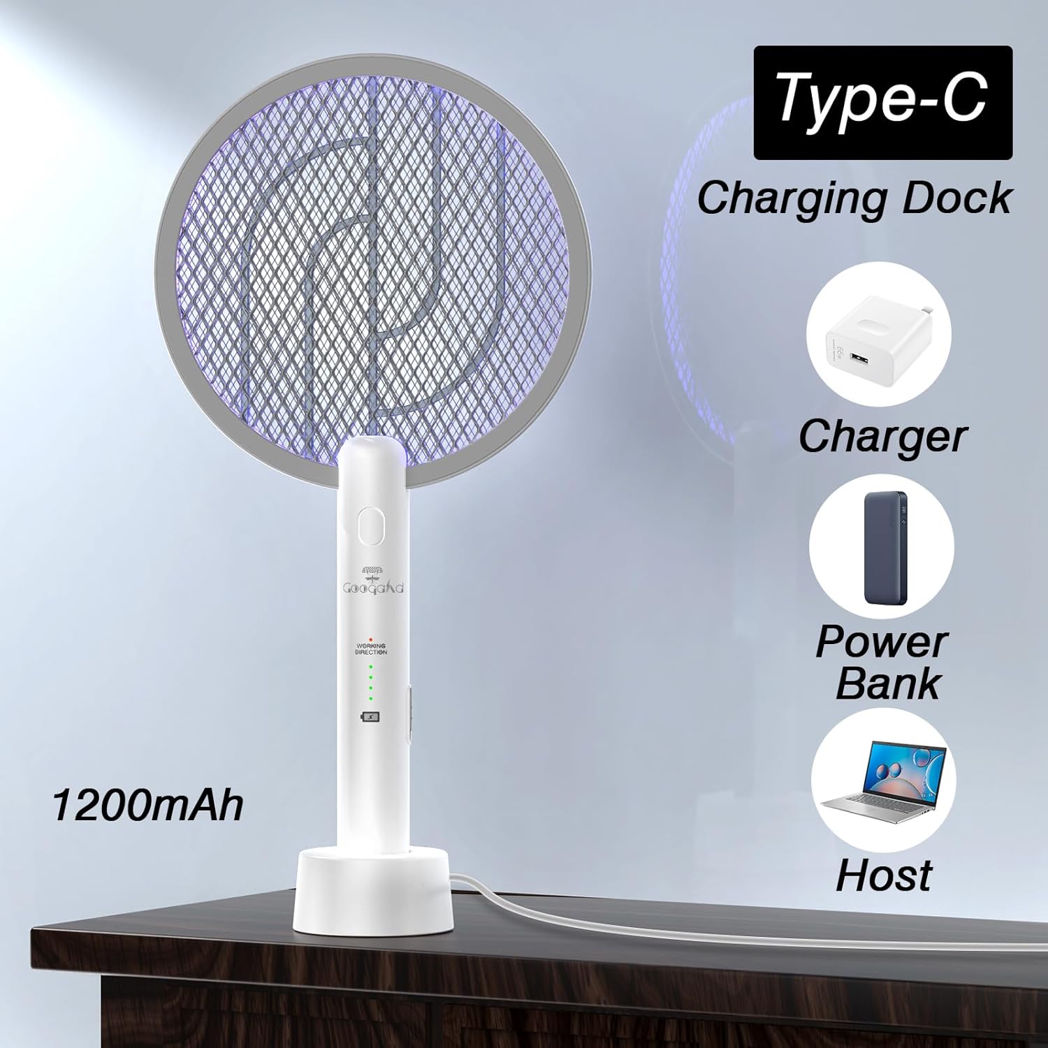 Bug Zapper Racket, 2 in 1 Electric Fly Zapper USB Rechargeable, 4000V Electric Fly Swatter with 3 Layer Safety Mesh, Indoor Outdoor Bug Zapper Racket for Kitchen, Bedroom, Camping(2 Pack