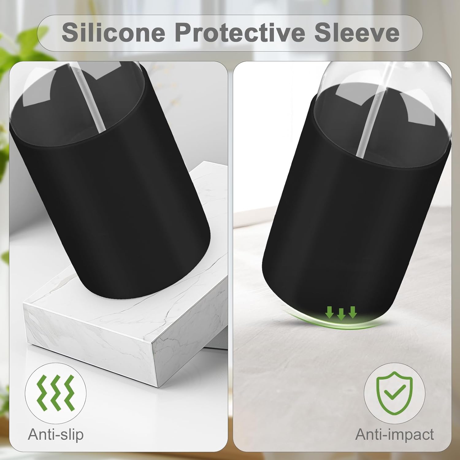 - Premium Glass & Sturdy Silicone Sleeve: Crafted from high-transparency glass, our bottle offers a clear view of liquid levels, ensuring effortless monitoring and usage. The included silicone sleeve ensures minimizing the risk of breakage and slips, making it safe for daily use.