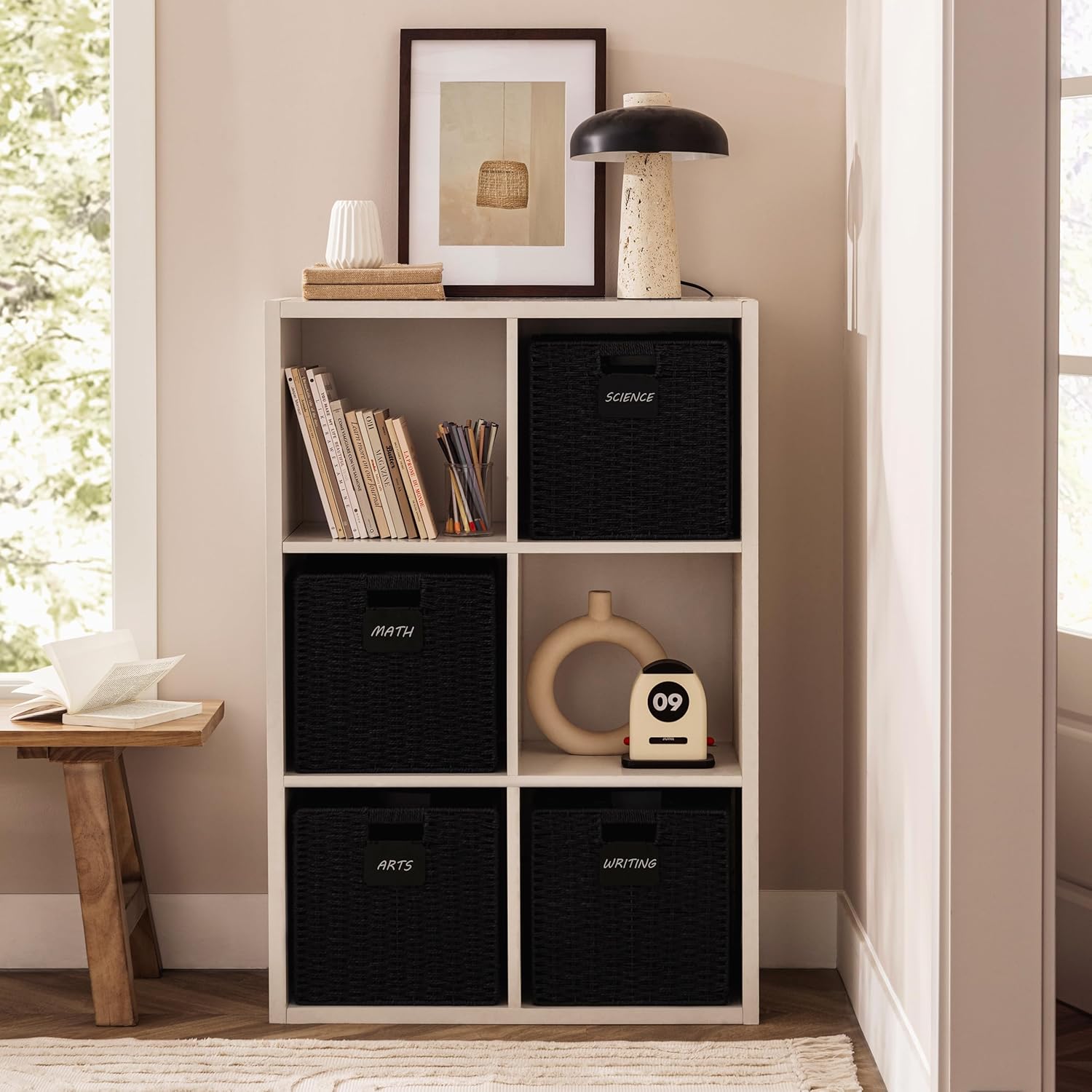 UBBCARE 2 Pack Wicker Basket, 10.5×10.5 Storage Cubes with Label, Foldable Cube Storage Bin with Handle, Square Storage Basket for Shelves, Woven Paper Rope Basket for Organizing, Black