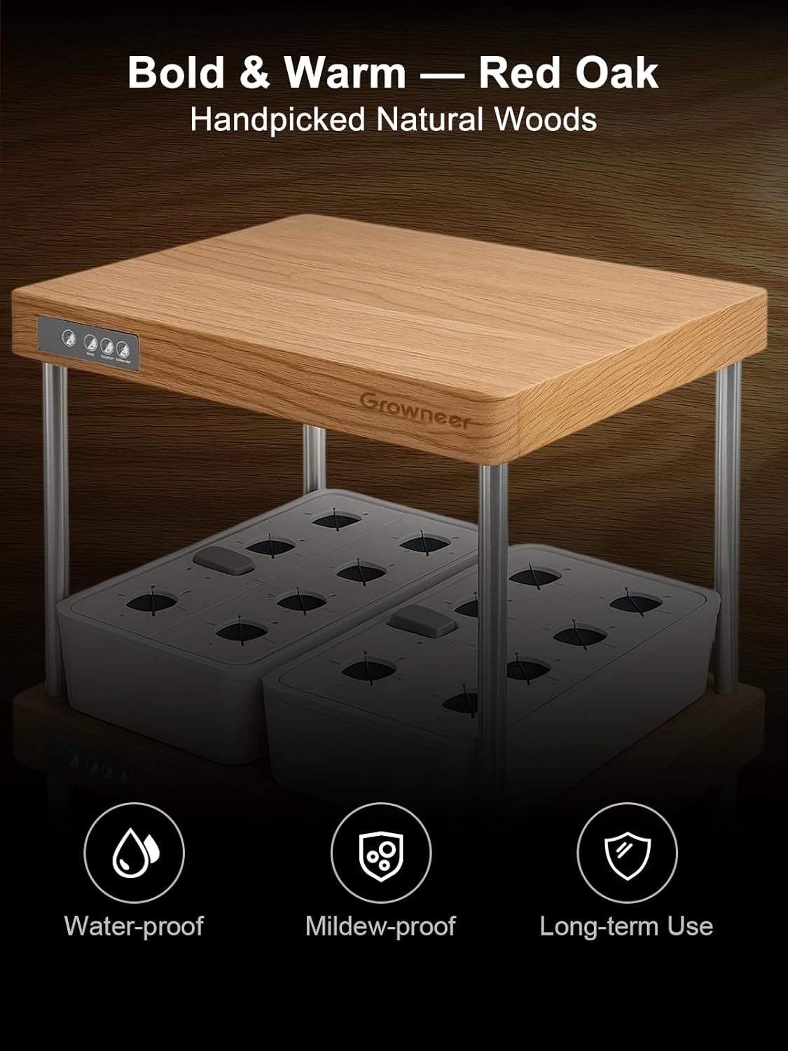 GROWNEER HydroEasy1.0 Hydroponics Growing System Kit, Beginner-Friendly Indoor Garden for Vegetable Fruit Herb, Red Oak Design, Perfect Gift Idea, Full-Spectrum LED Lights for Maximum Growth