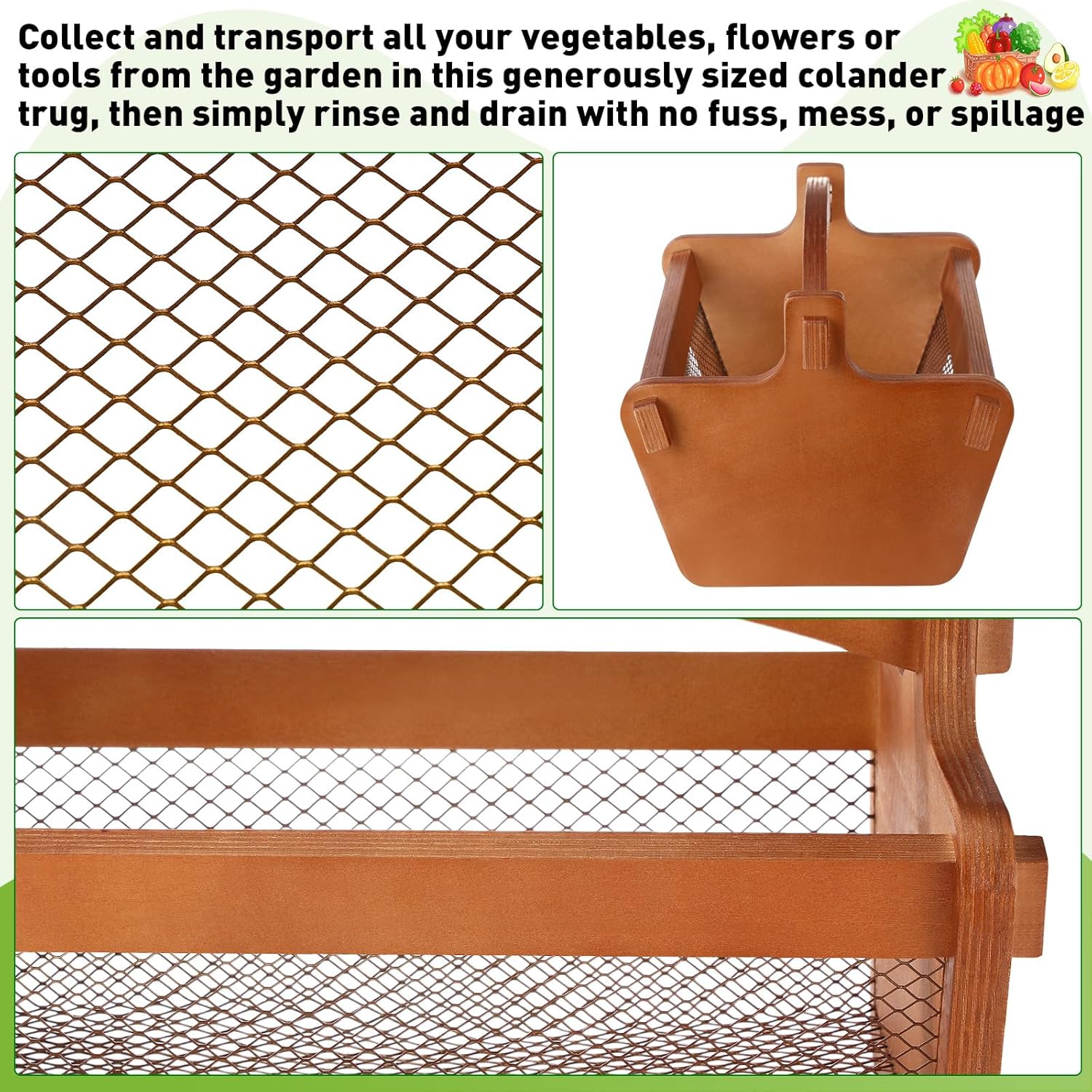 - Sturdy Construction: the garden hod harvest basket crafted from robust pine wood and rustproofed mesh wire bottom, exemplifies durability and longevity, ensuring it can withstand the weight of harvested produce and the rigors of agricultural use; Manually handcrafted to refine a smooth finished that boosts its natural appeal. Designed with quality in mind, the baskets are large and sturdy