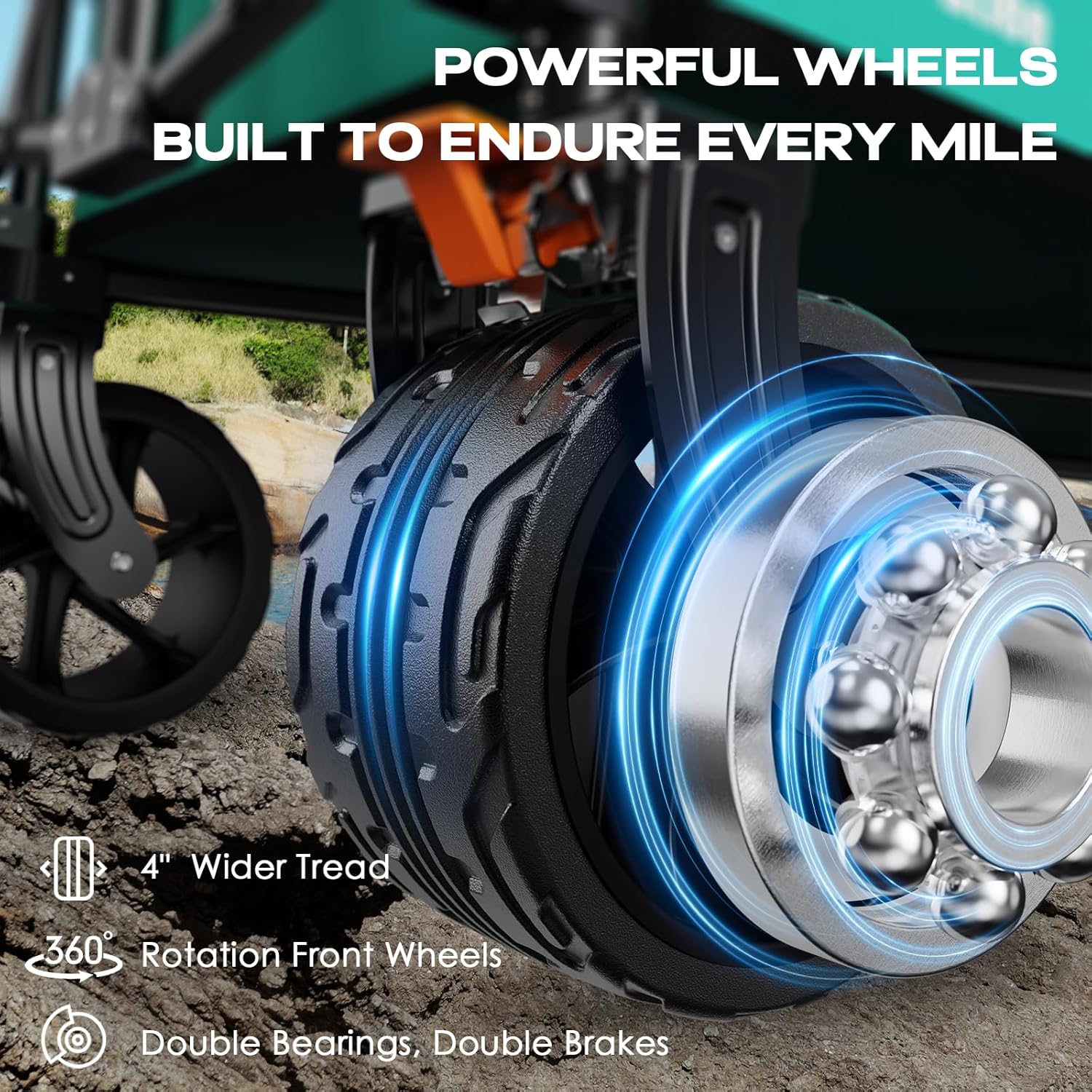 - 【Extra Wide All Terrain Wheels】 Our Wagon is equipped with dual bearing all terrain tank wheels, which can handle most of the terrain! The front wheels are also equipped with dual brakes to give you the ultimate peace of mind! Note: Tank wheels are not suitable for soft sand.