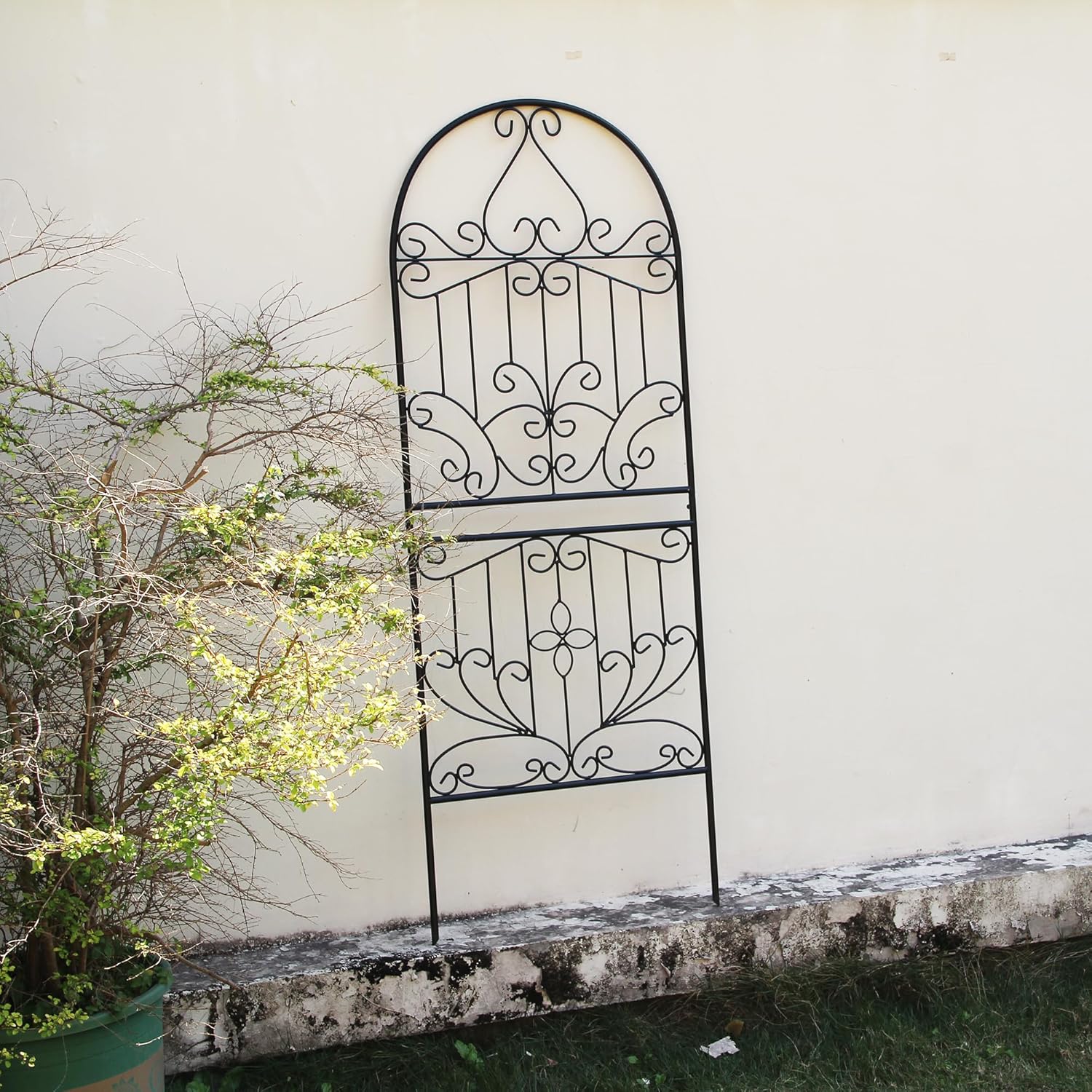 - Stable Structural: The metal frame of the lattice has strong and sturdy foundation of welded Iron that allows this structure to stand with stability. Wide arch side panels increase the climbing area of plants. The 9.8 inch ground spike inserts firmly into the ground, adding extra support to the trellis.