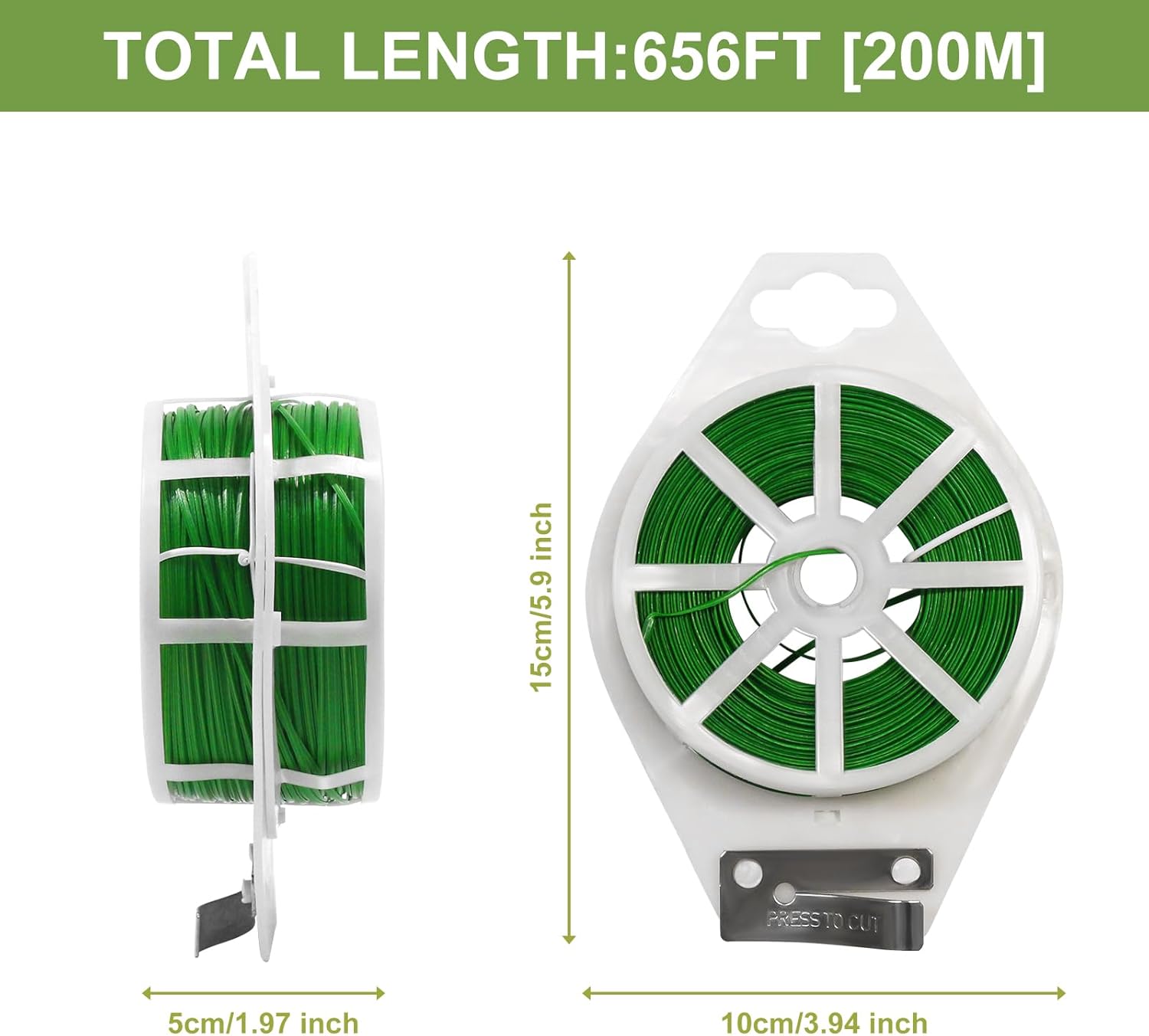 - 【Great Length and Superior Material】: 656 feet (200 meters) per roll, durable enough for long-term use.The garden wire is made of high-quality green plastic-coated iron.