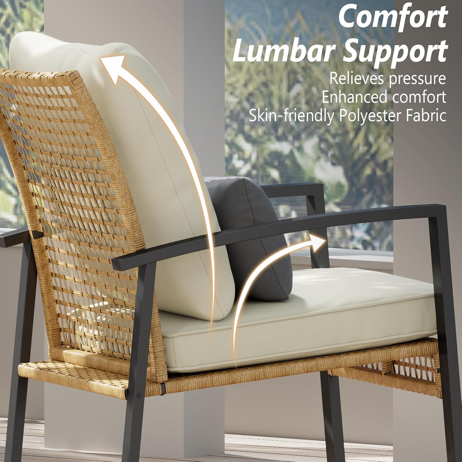 - Solid & Durable Frame: Built with a solid powder-coated metal frame and high-quality wicker material, these front porch chairs set of 2 are designed for long-lasting durability and style. The robust construction guarantees this outdoor furniture set stands strong, making it perfect for outdoor spaces