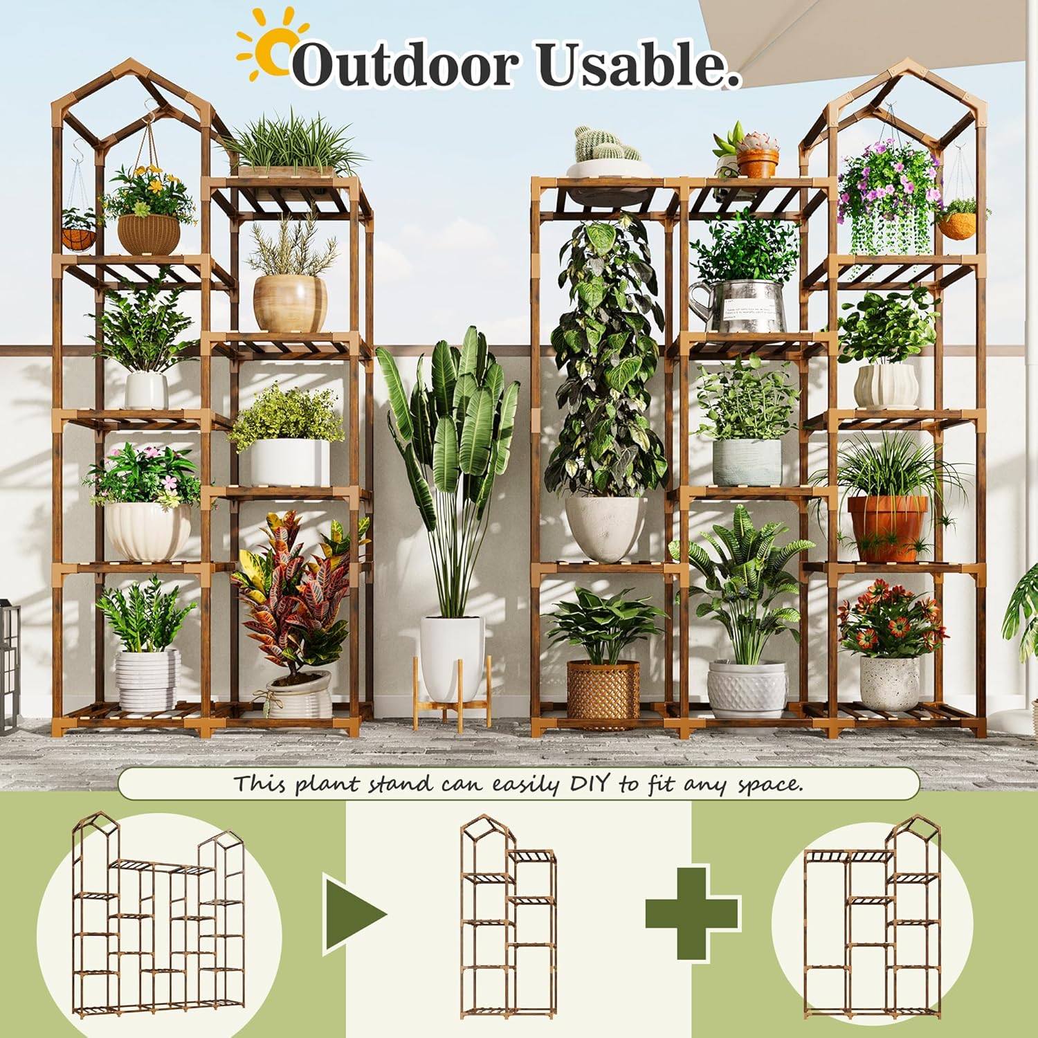 EnHomee Plant Stand Indoor Plant Stands Outdoor Tall Plant Shelf for 19-25 Pots Corner Tiered Plants Stands for Multiple Plants Wood Hanging Plants Holder for Garden Balcony Patio Window Porch