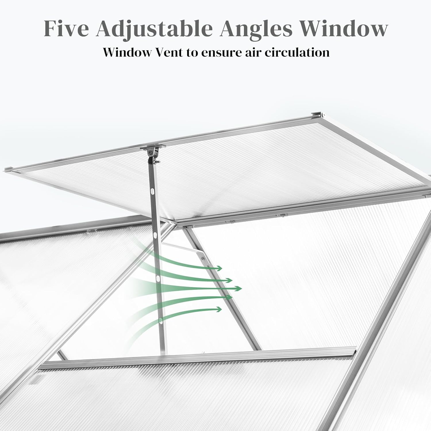- Professional-Grade Construction - Built with a sturdy silver aluminum frame and crystal-clear polycarbonate panels, this green houses for outside offers excellent insulation and UV protection, creating an ideal environment for growing vegetables, flowers, and herbs.