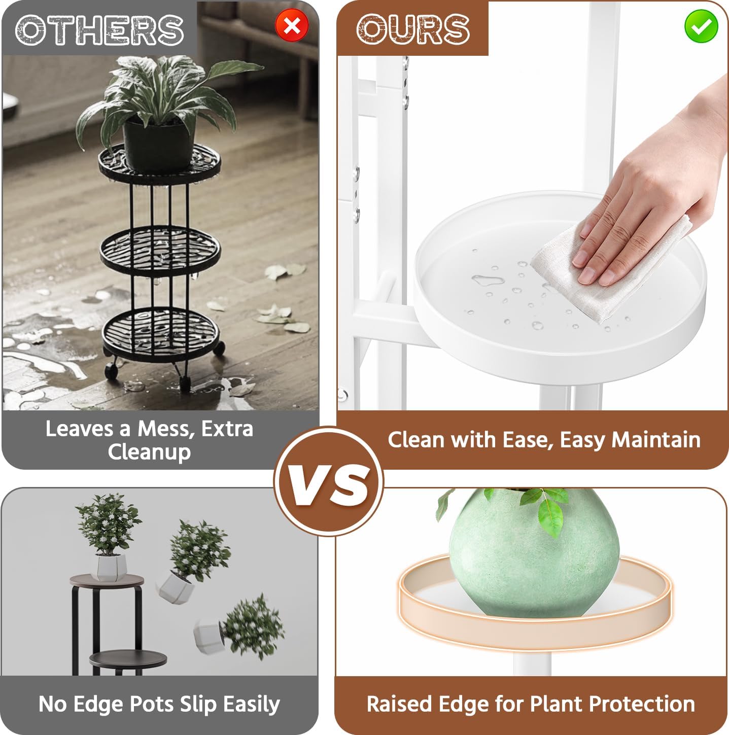 - 【 Keep Floors Dry with Edge Trays】Say goodbye to water stains on your floor! Our plant stand indoor tall come with edge trays that catch any overflow, keeping your plants safe and your floor nice and dry. No more worrying about water damage when caring for your indoor plants!