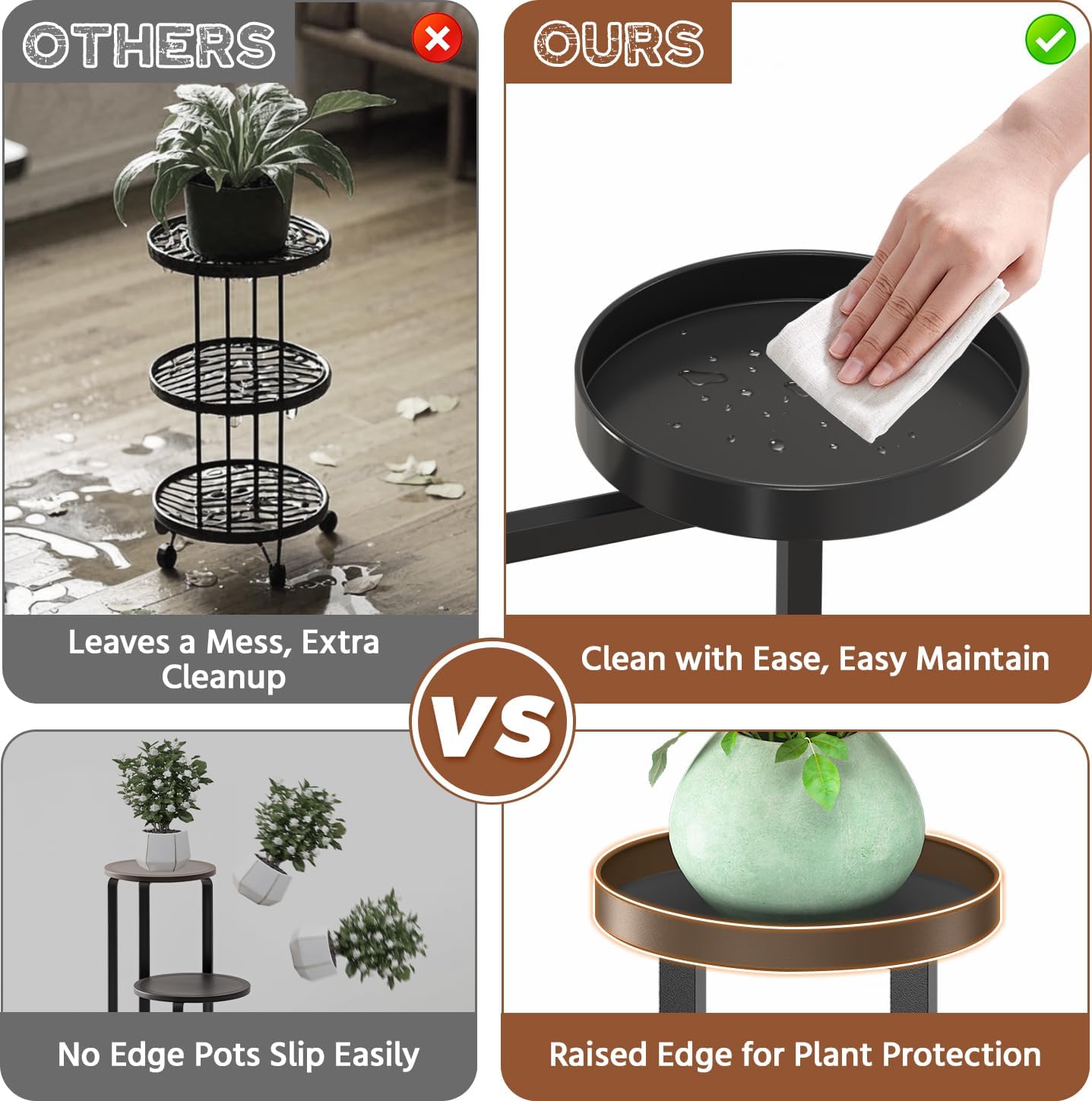 - 【 Keep Floors Dry with Edge Trays】Say goodbye to water stains on your floor! Our tiered plant stand indoor come with edge trays that catch any overflow, keeping your plants safe and your floor nice and dry. No more worrying about water damage when caring for your indoor plants!