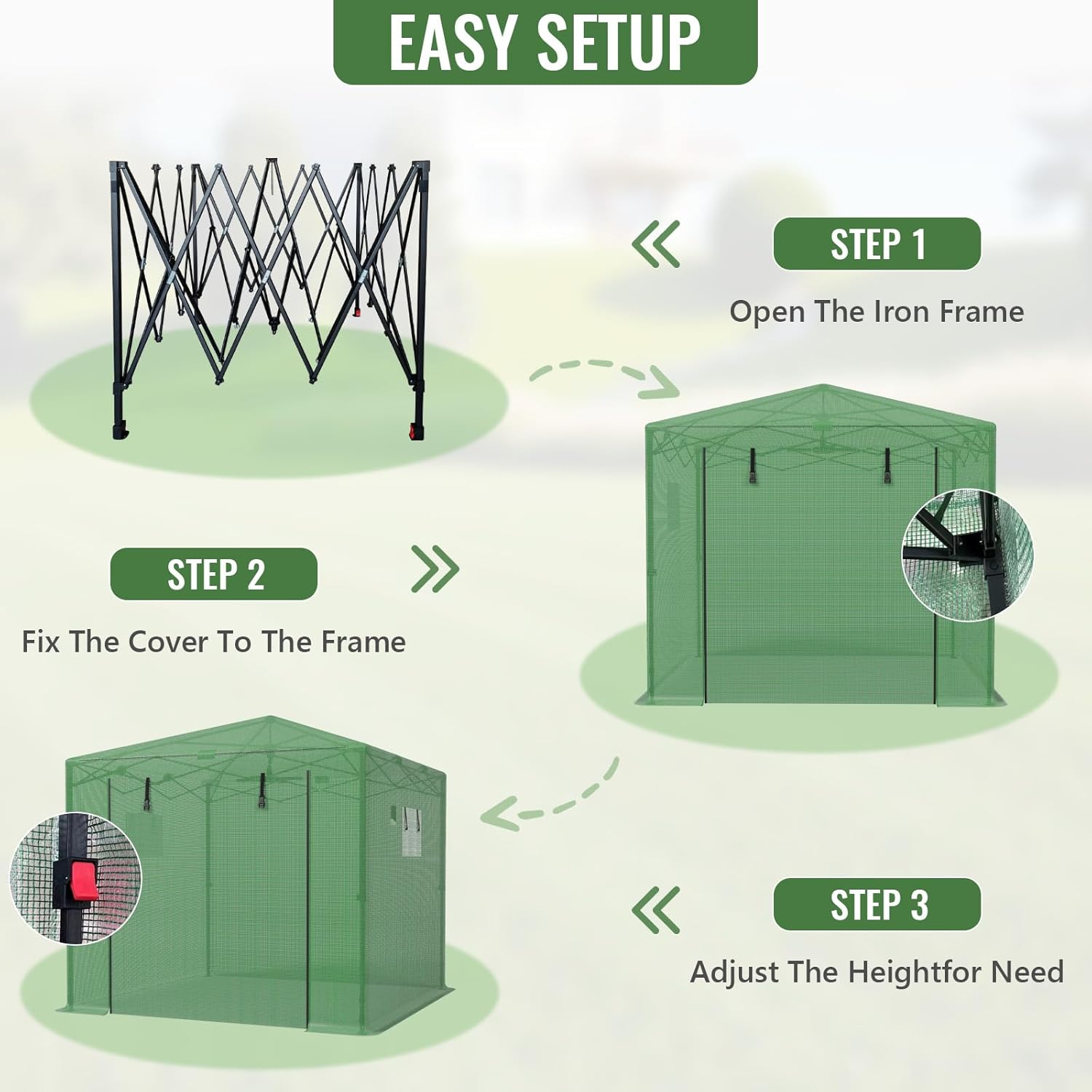 10X10 FT Pop Up Greenhouse,Greenhouse for Outdoors, Portable Walk-in Greenhouses with Roll-Up Zipper Door, PE Cover Greenhouses for Garden and Backyard, Easy Setup