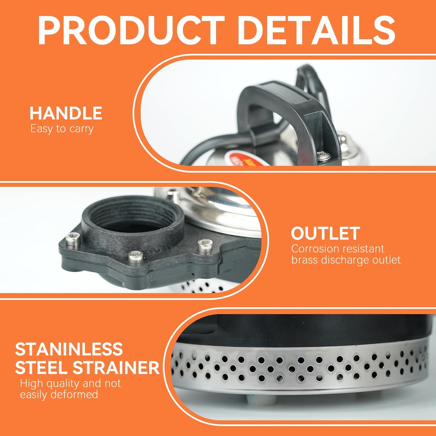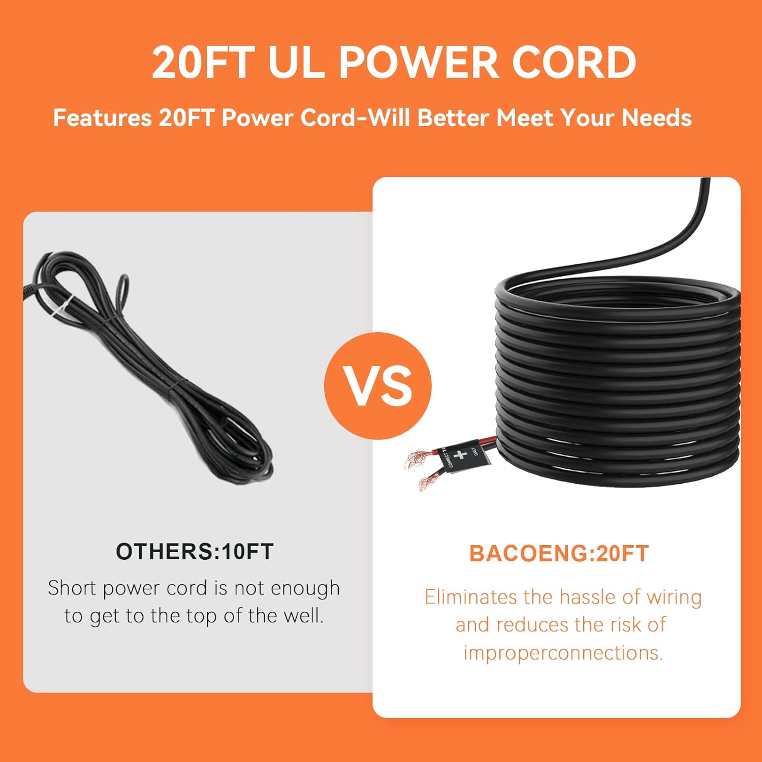 BACOENG DC 24V Solar Water Pump, Submersible Well Pump 23FT, 24GPM Lift for Farm & Ranch
