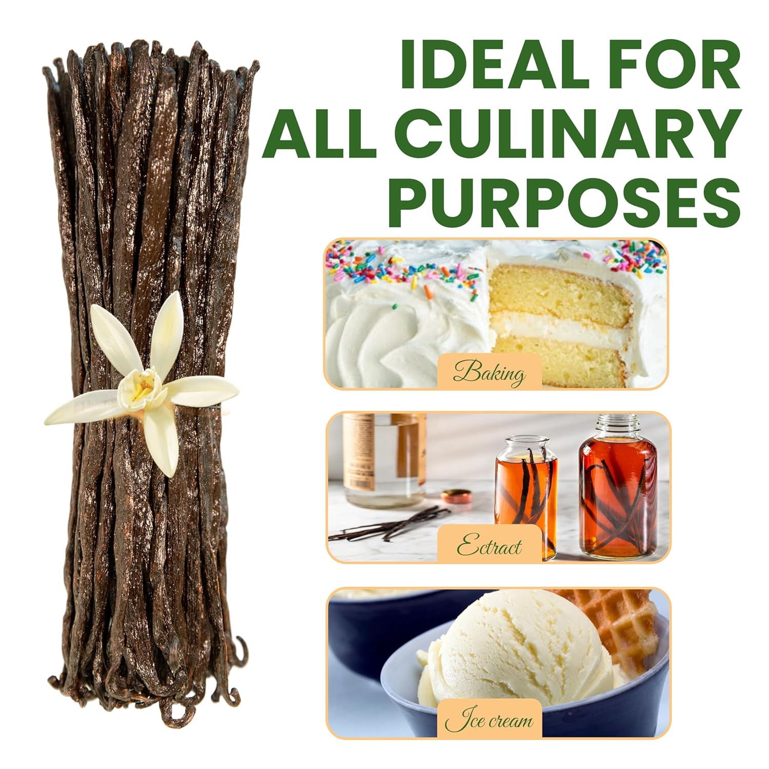- Ethically Sourced & Organic – Sustainably harvested by small-scale farmers in Madagascar. Non-GMO, vegan, and gluten-free vanilla beans ensure premium quality with no additives or preservatives.