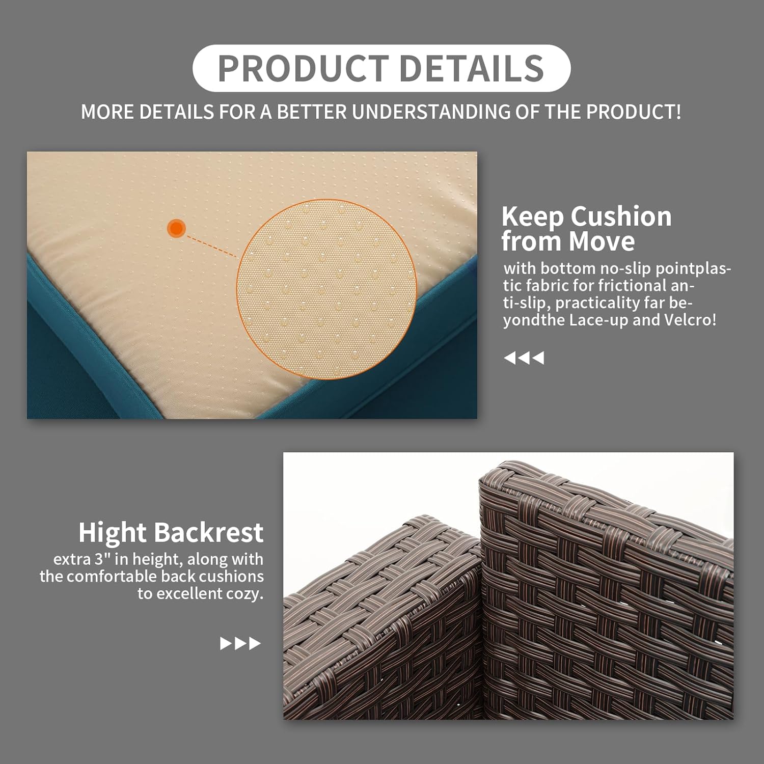 - Quality & Maintain: Delicate composite weaving with half-moon and round all-weather HDPE wicker material handwoven over fully-welded powder-coated steel framing makes outdoor patio furniture very durable and sturdy. Breathable 250G polyester Anti-UV and water-repellent fabric. Each piece is designed to withstand sunshine beating down and rainstorms rolling through.
