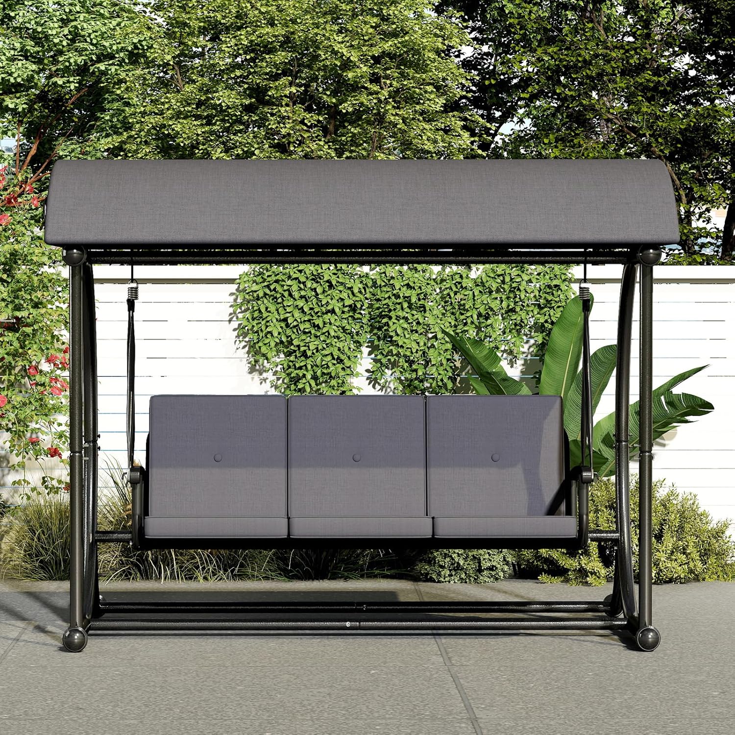 • Spacious D-Shaped Design: Features a robust D-shaped frame ensuring enhanced stability. The patio swing with canopy provides ample space for up to three people, making it perfect for family or friends to relax together outdoors. Its ergonomic design ensures comfort and stability