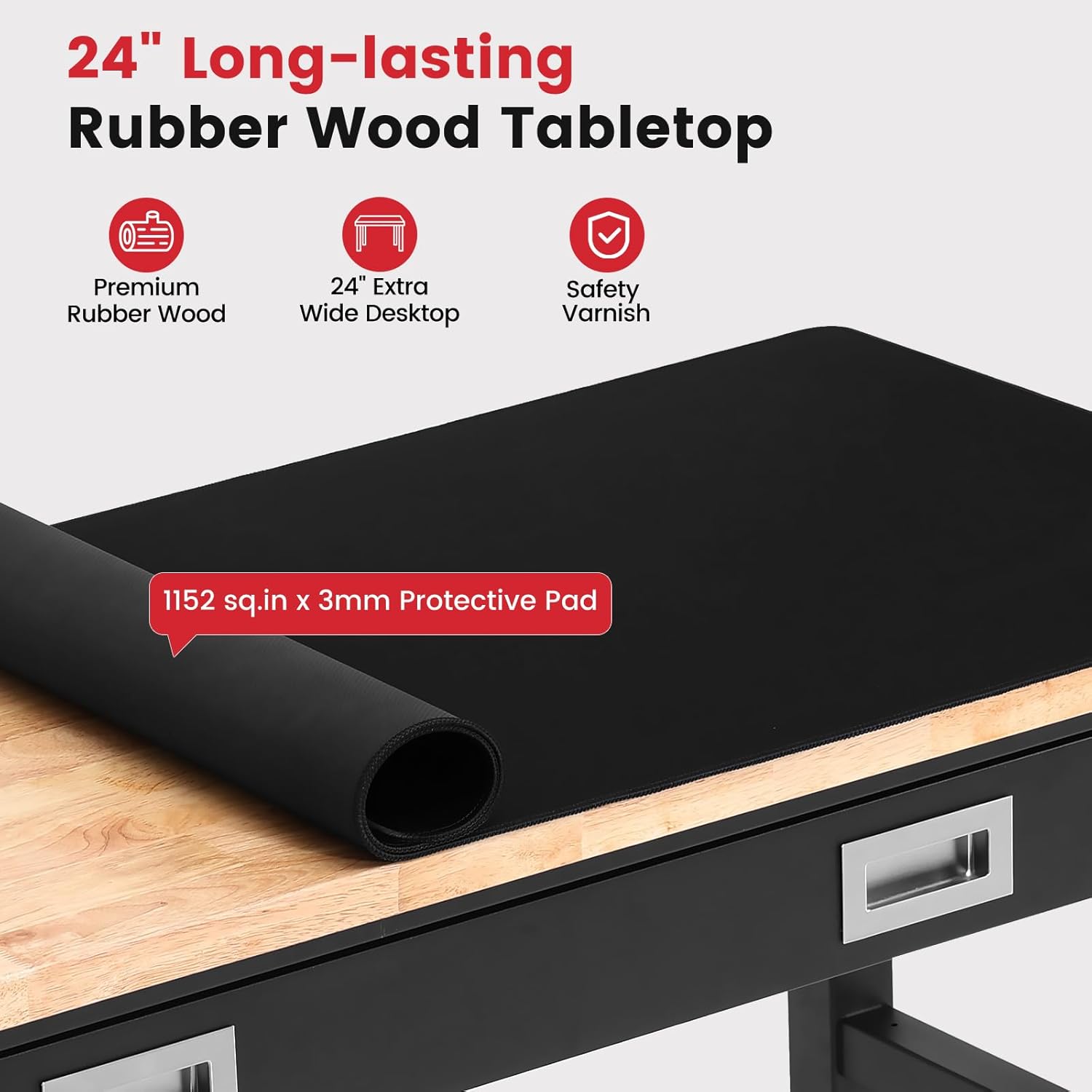 - Heavy Duty Rubberwood Tabletop: 30mm solid rubberwood tabletop supports up to 2000 lbs, perfect for heavy tools and materials. Protective safety varnish ensures long-lasting durability.