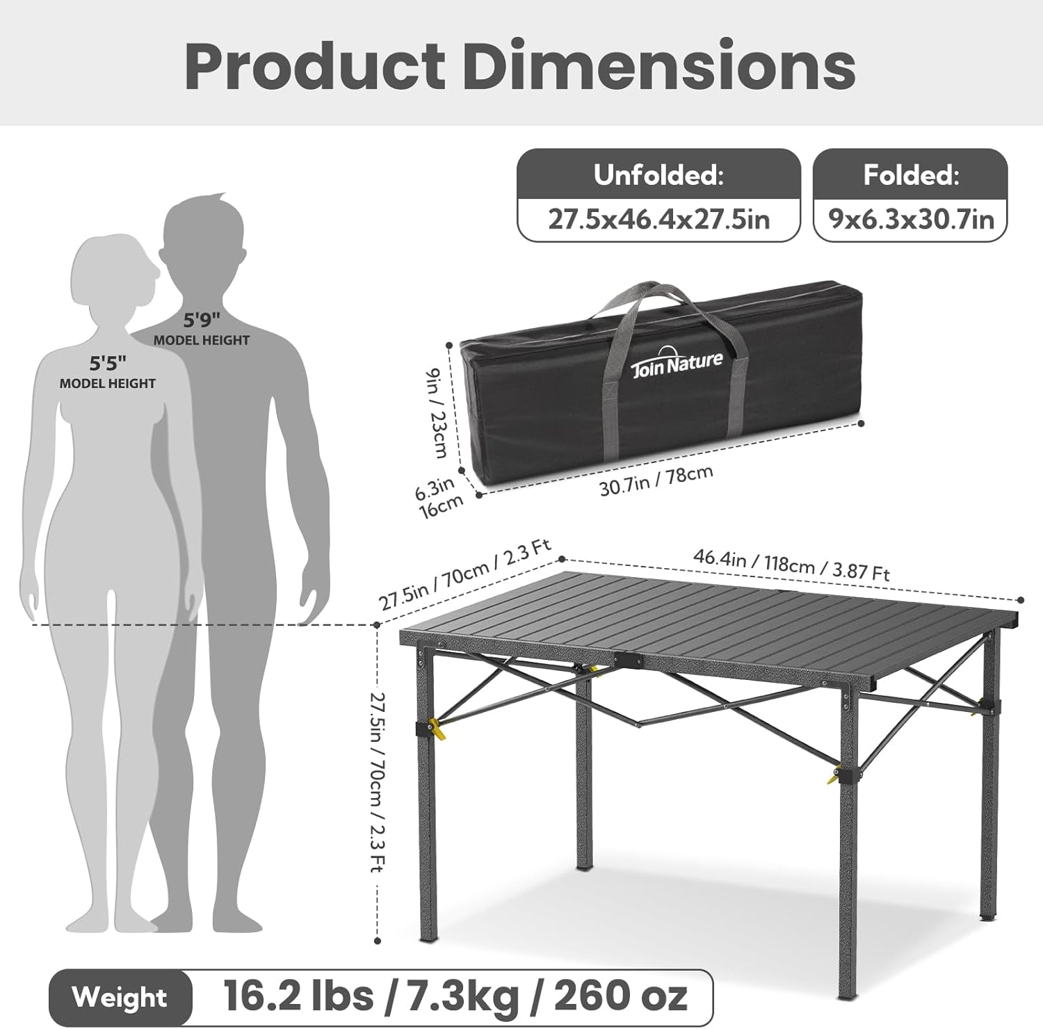 Portable Outdoor Camping Table Large for 2-6 Person - Foldable Camp Table with Aluminum Roll-Up Top & Carry Bag for BBQ, Tailgating, Backyard, 220 Lbs Capacity, Stable & Sturdy (Black)