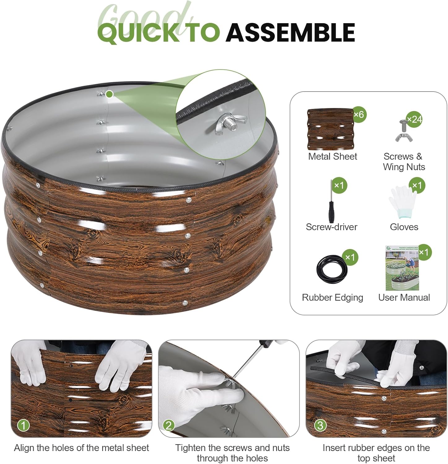 G GOOD GAIN Round Raised Garden Bed - 2Pcs 2x2x1ft Galvanized Steel Planter Boxes Outdoor with Rubber Edge Trim | Metal Raised Beds for Gardening Vegetables Flowers Fruits Herbs (Wood Grain)