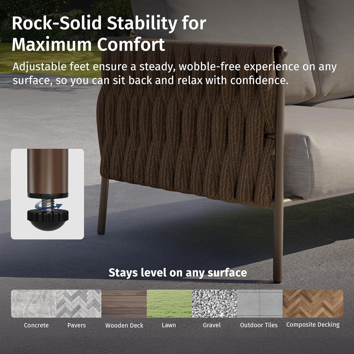 - UNMATCHED OUTDOOR DURABILITY: Crafted with a heavy-duty steel frame and durable Olefin rope, this 3-piece set resists rust, fading, and weather damage. The waterproof, breathable cushion covers ensure all-season comfort, making it perfect for outdoor use year after year