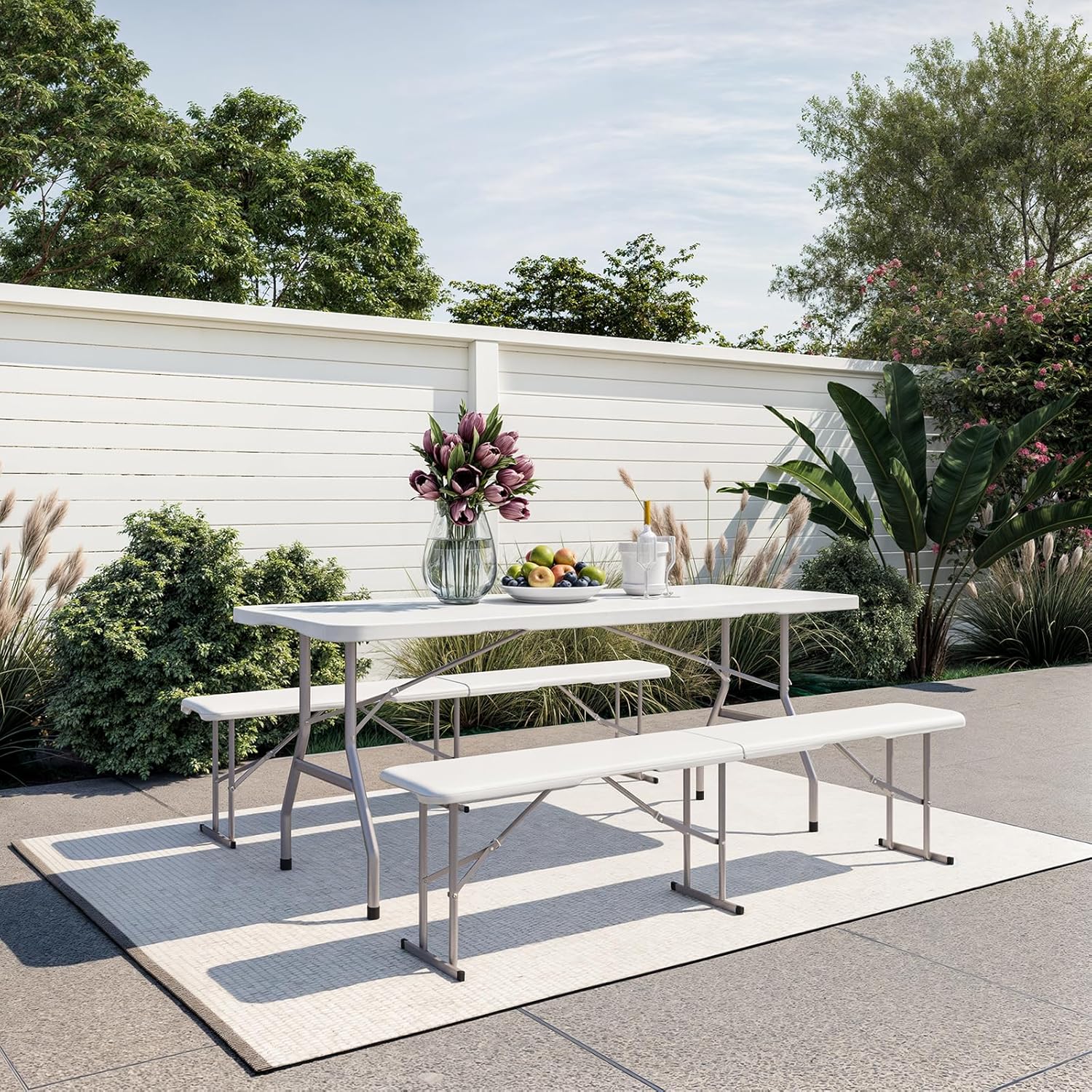 • Wide Applications: Our patio bench is suitable for a wide range of indoor and outdoor settings, such as patio, lawn, garden, balcony, etc. Two folding benches are included in the package for most occasions, just like parties, picnics, camping and other activities.