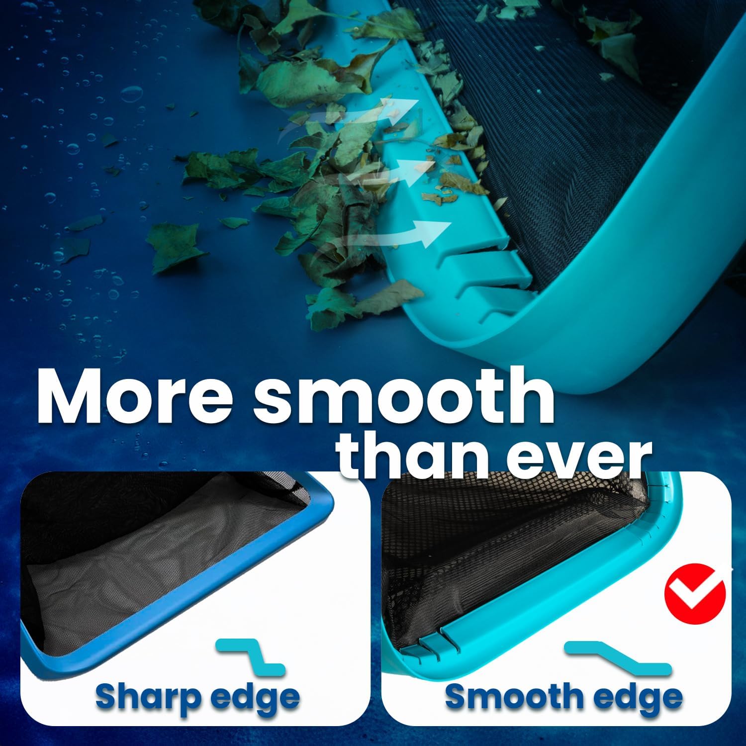 - Sturdy Aluminum Frame - The pool skimmer net is designed with a sturdy aluminum frame, ensuring long-lasting working & resistance to wear & tear; Weight capacity: 6.6lbs