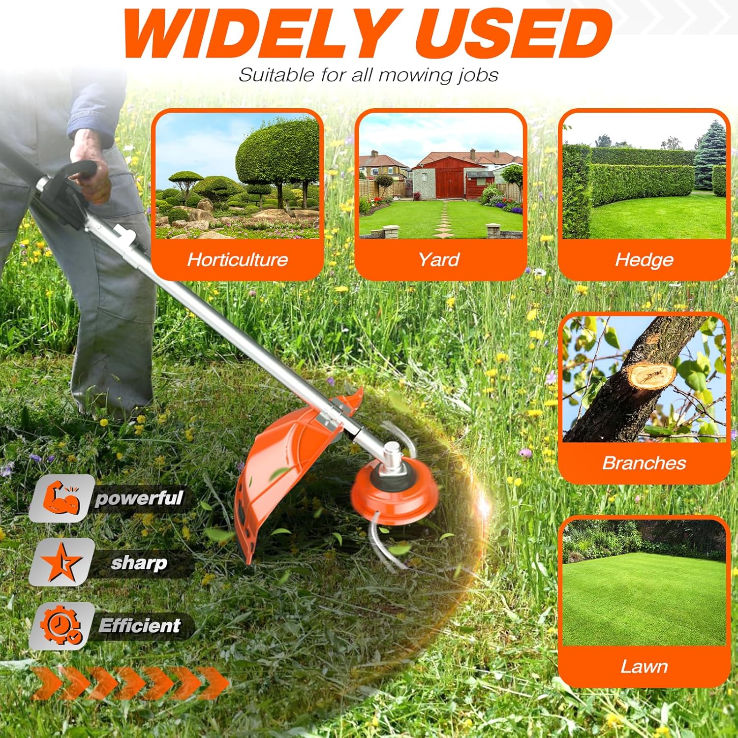- Powerful Enginer:The gas string trimmers more power and run time than electric or battery-powered trimmers,which makes them suitable for larger yards or heavy-duty trimming jobs.It allow you to make Multi-Angle adjustment, ideal tool to trim your hedges down to size,head that rotates from 90 degrees and is fully adjustable with variable cutting angles