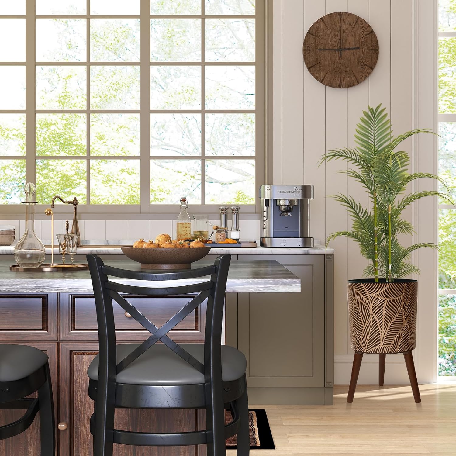 - Durable and Stylish Stand:Includes a sturdy wooden plant stand that adds both height and stability—perfect for showcasing tall plants, indoor greenery, or trailing vines in your favorite planter.