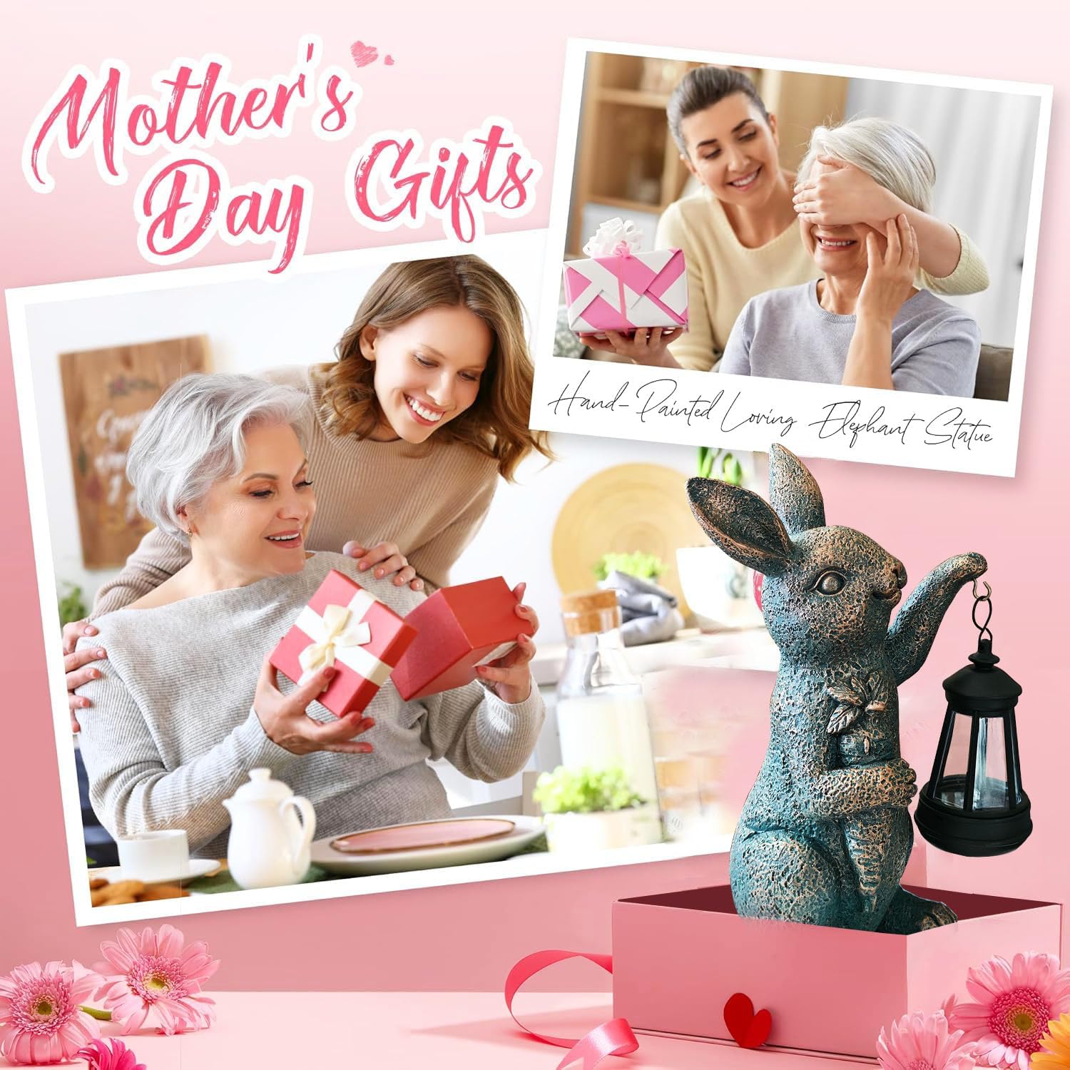 Solar Garden Statues -Rabbit Lantern Outdoor Handmade Resin Statue with LED Light, Cute Carrot Holder for Patio, Yard, Gift Ideas (rabbit2)