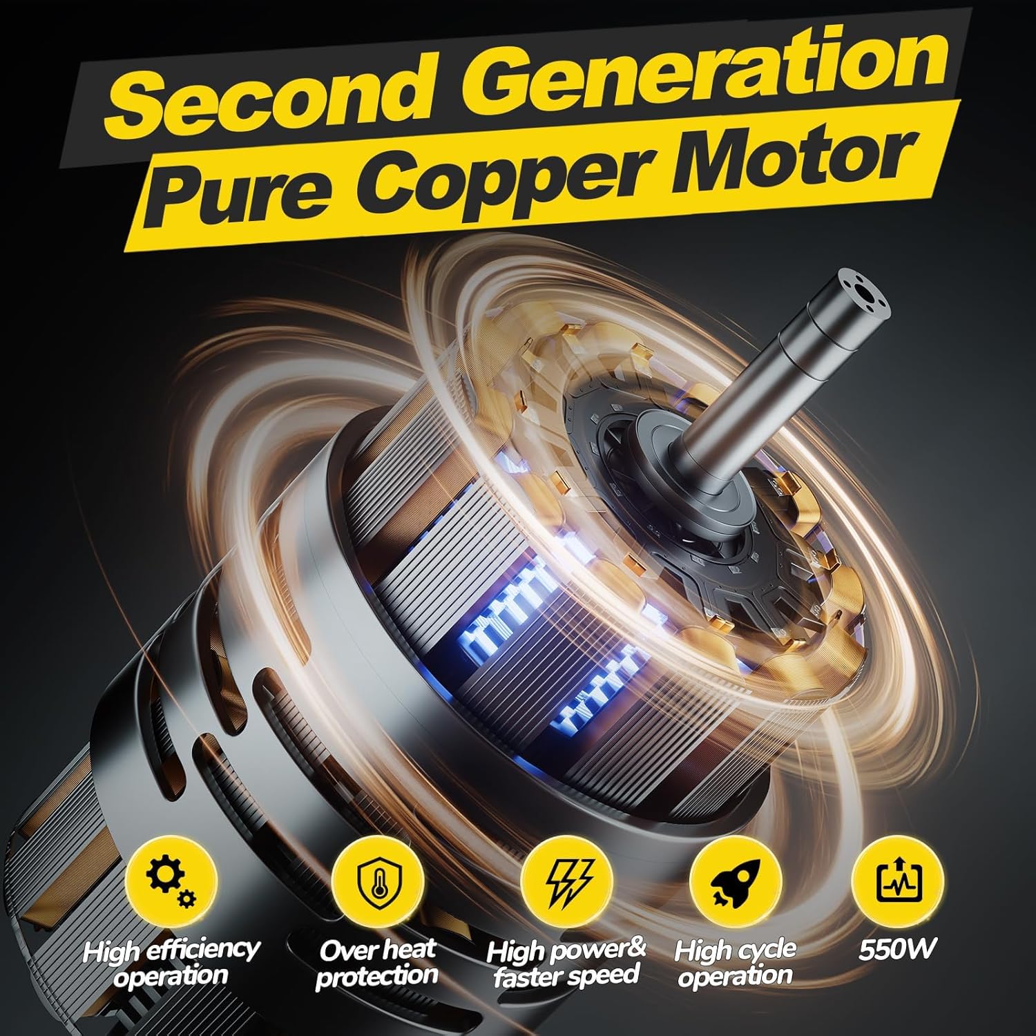 - SECOND GENERATION PURE COPPER MOTOR: Equipped with upgraded 550W pure copper motor (23000 RPM) featuring enhanced heat dissipation and overload protection. The chain is made of high quality manganese steel and effortlessly cuts through 6" branches and logs in seconds. Every homeowner, woman needs it, with a cordless chainsaw you will save a lot of money pruning your garden yourself instead of paying someone to do it!