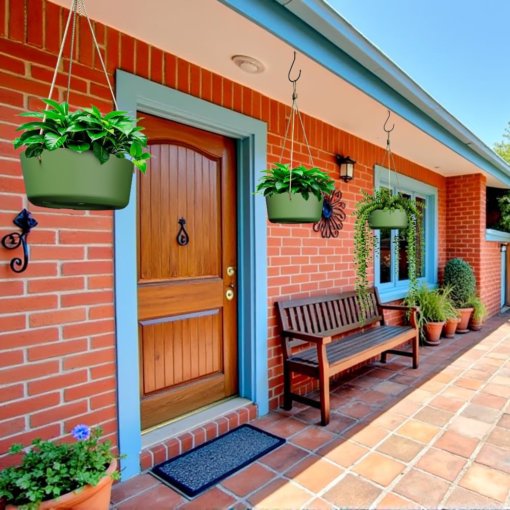 10.7 Inch Hanging Planter for Outdoor Indoor Plants,2 Pack Hanging Flower Pots with Drain Holes for Garden Home Decor Use (Dark Green)