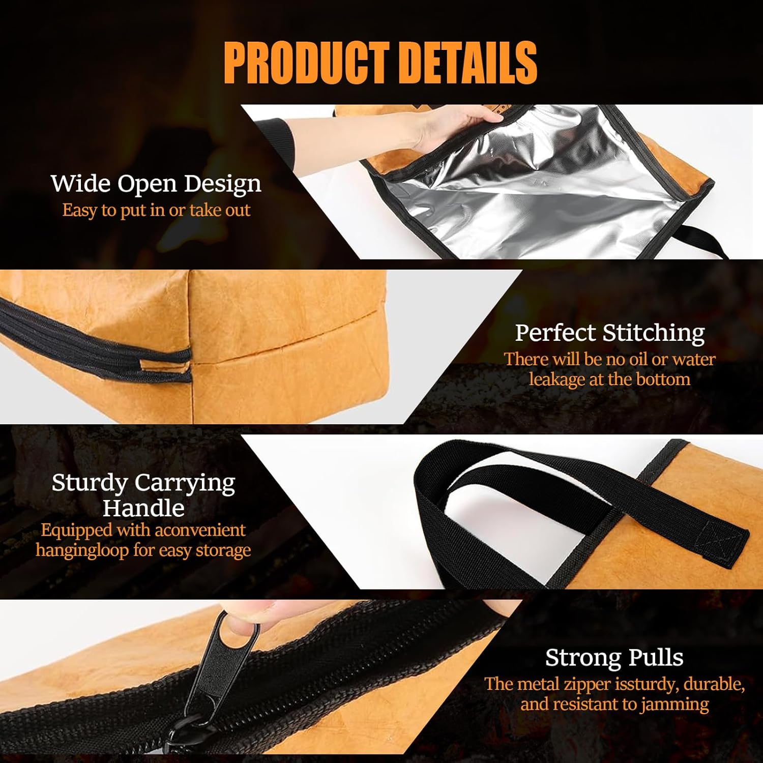 - 【5-Layer Insulation to Seal in Juiciness】Bid farewell to dry and tough meat forever! Thanks to its advanced 5-layer insulation construction, this insulated bag effectively preserves the optimal temperature for your barbecued delicacies. During the resting period, it enables the meat to reabsorb moisture, ensuring that every bite remains exquisitely tender and succulent. For every passionate barbecue enthusiast, this is an essential grilling accessory that should not be missed.