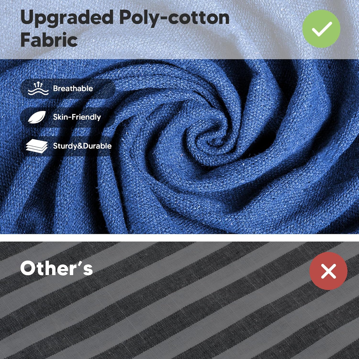 - Upgraded Fabric: Our Brazilian Camping hammock is made of eco-friendly thicker version poly-cotton fabric (no lint, no odor, not pilling, not fading, skin-friendly, and breathable), stronger and much more durable than ordinary fabric hammocks. A comfortable cocoon style hammock can keep you safe while enjoying the peaceful leisure time