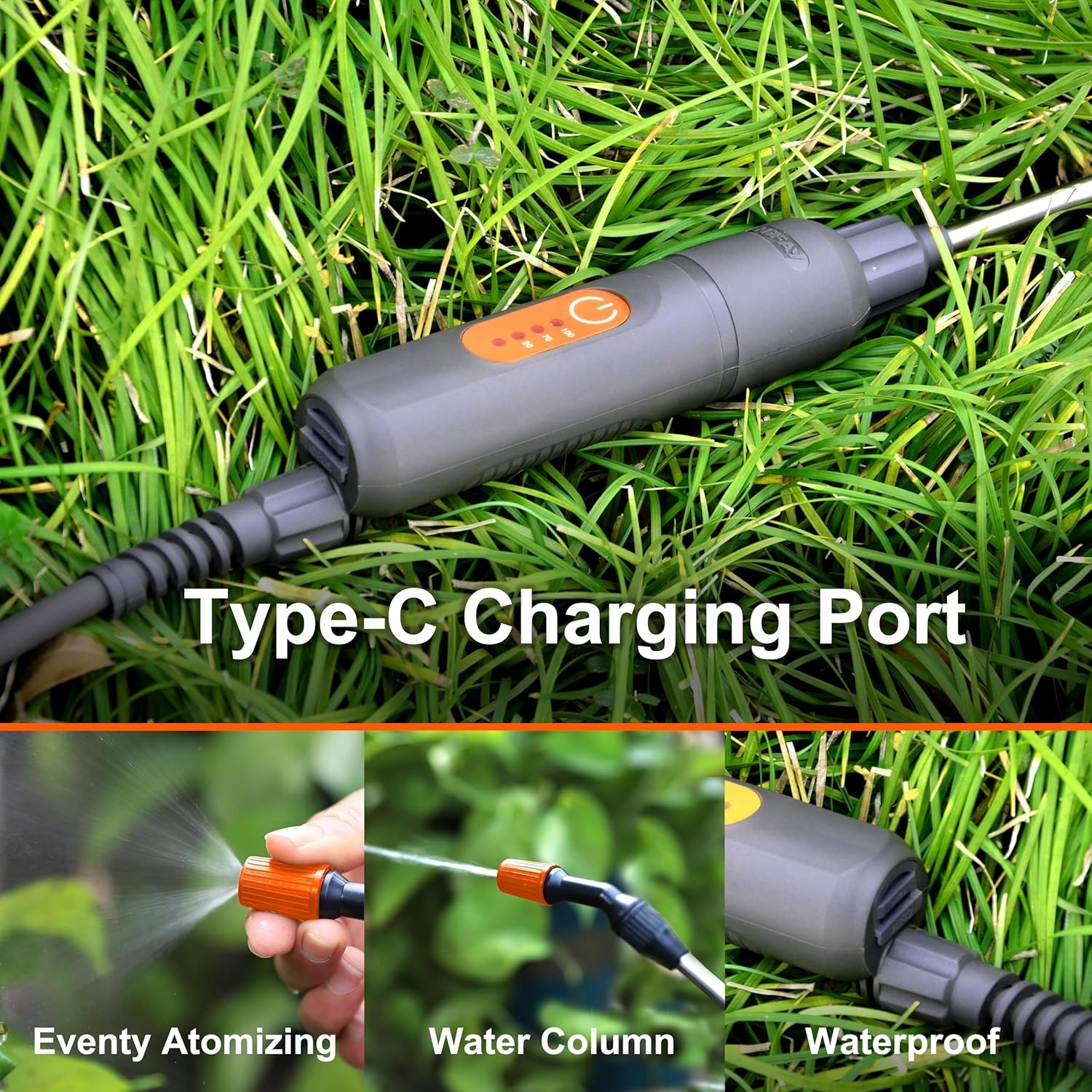 - 【Long Battery Life 】 The HIFAY ES4-PRO Battery Powered Garden Sprayer built-in 4000mAh lithium battery, use a charger with an output voltage of 5V/1A, don't use while charging, the charging indicator is red and turns blue when fully charged, it can be sprayed for 4-5 hours. ;Type-C USB charging cable is included but CHARGER IS NOT INCLUDED