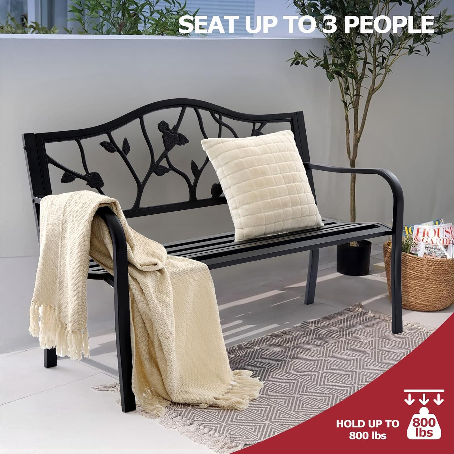 50” Strawberry Outdoor Garden Bench, Weatherproof Sturdy Cast Iron Metal Frame Patio Park Bench for Porch Yard Lawn Deck Park (Black Strawberry Style)