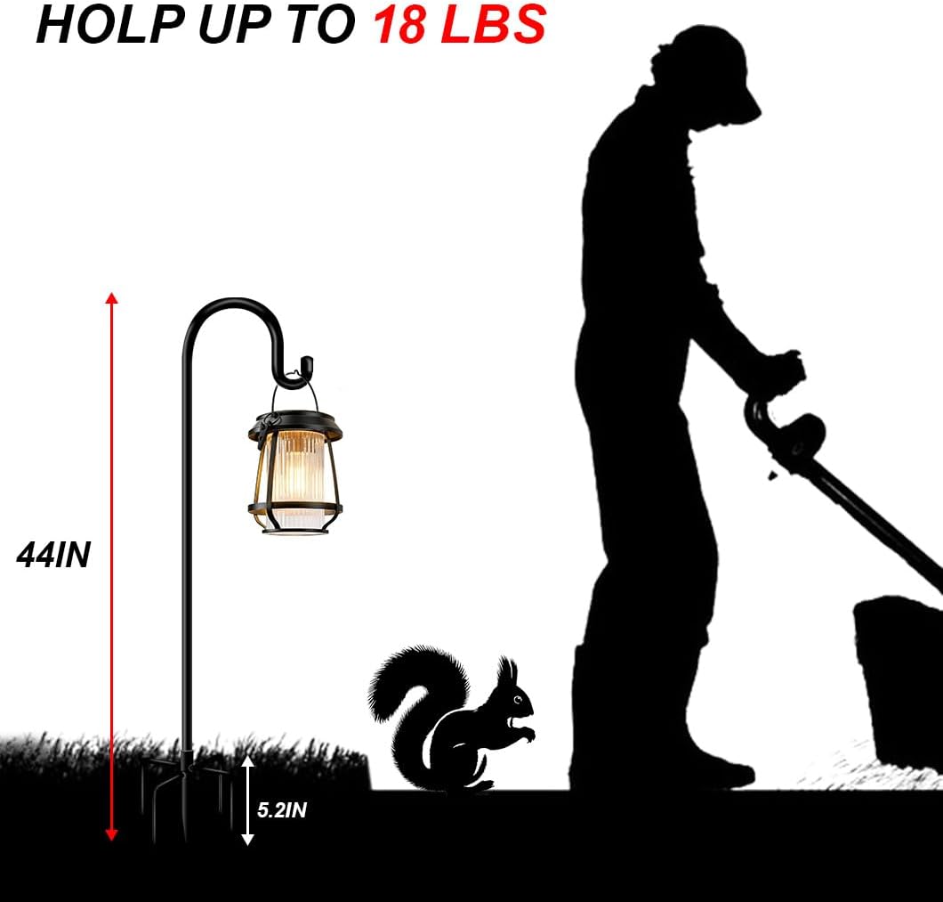 - PERFECT SIZE: The metal shepherd poles height is 44 inches (Can be adjusted by increasing pole to height: 60in, 76in and 92in) and load up to 18 pounds. Its decorative strong, second variable wind chime stand, hummingbird feeder hanger, or hanging plant baskets, wild bird feeders, birdbaths, flowerpots, solar lights, lanterns, candle holders, mason jars, ornaments, shooting targets etc.